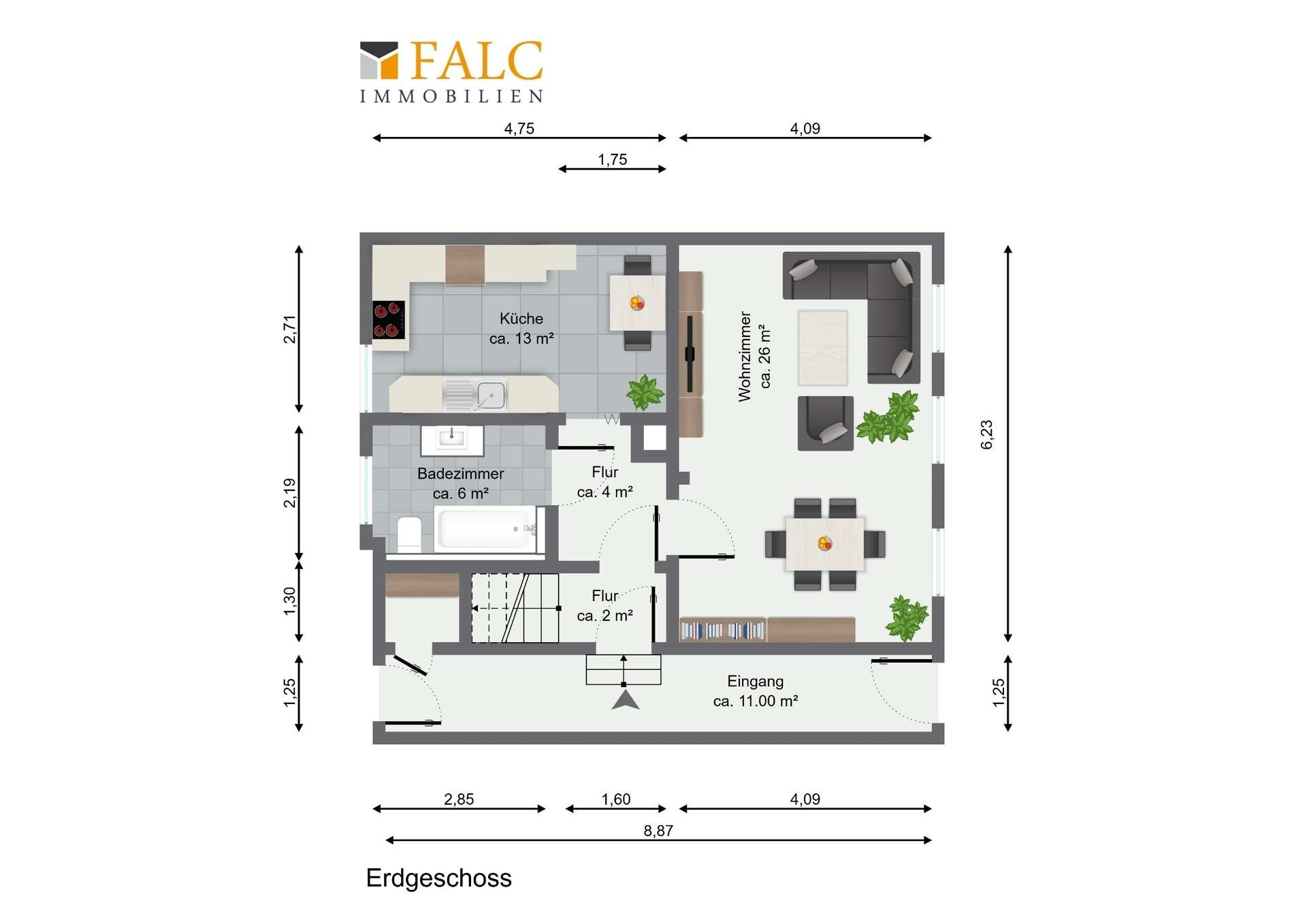 Zur Info, aufgrund der 3D-Perspektive wirken die Räumlichkeiten in der Regel kleiner als in der Realität.