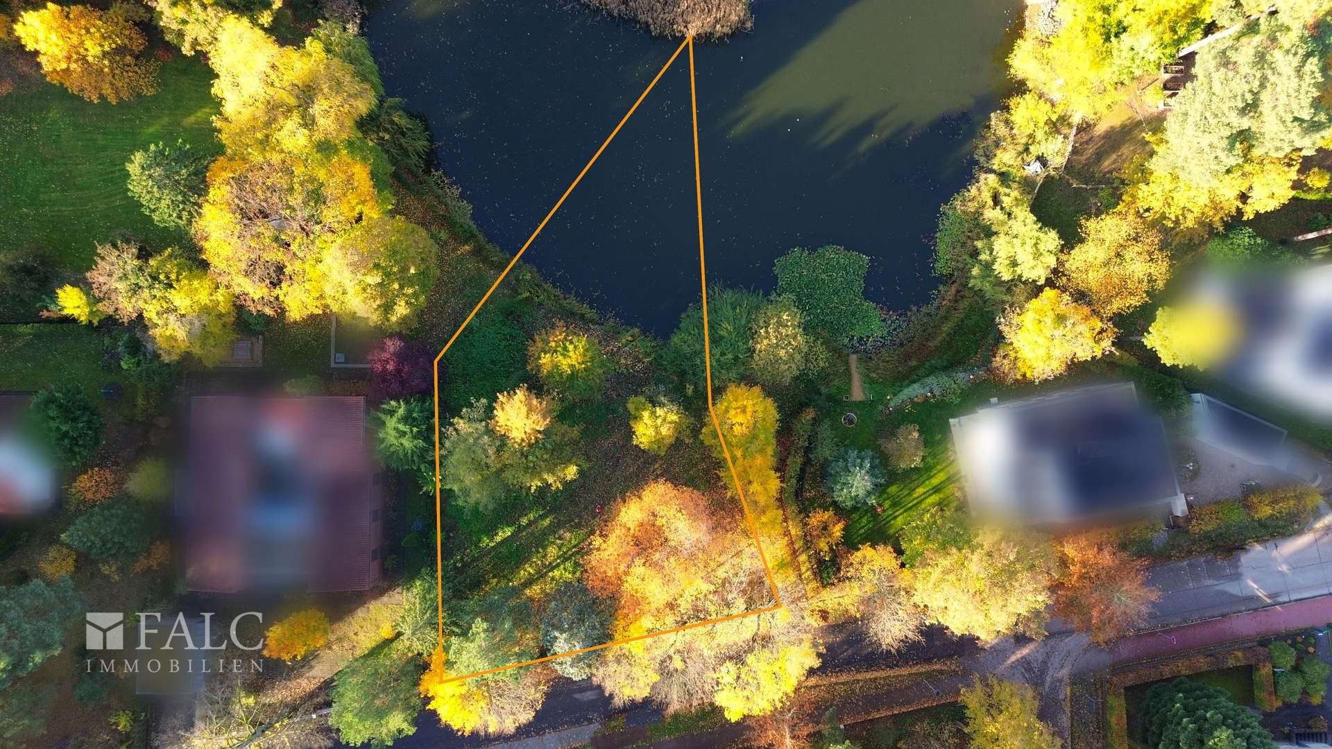 Die gesamte Grundstücksgröße umfasst 1.606m², davon entfallen 857m² auf die Landflächen des Grundstücks, bei weiteren 749m² handelt es sich um die direkt Flurstücke, die einen Teil der Wasserfläche bilden.