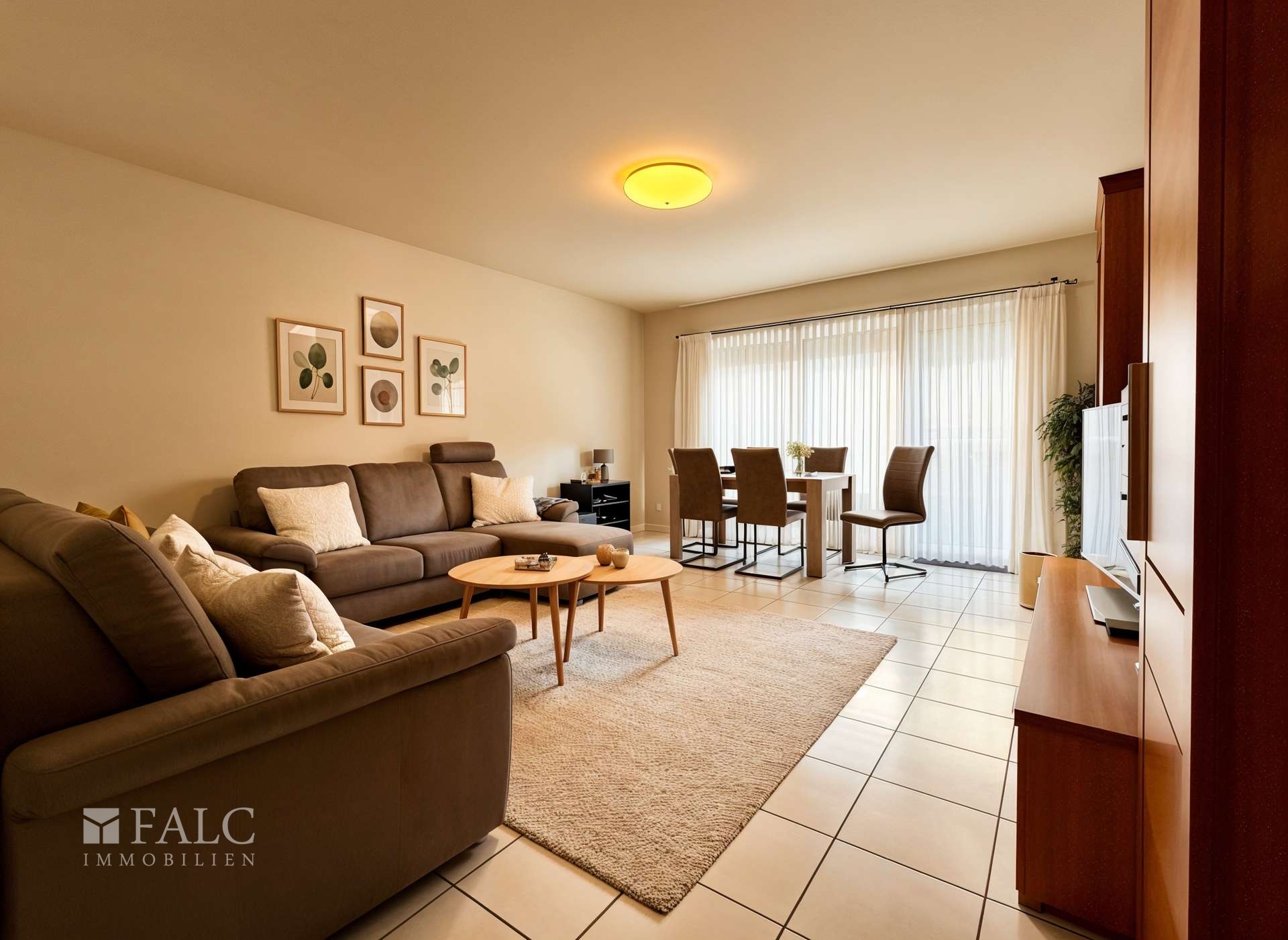 Der Wohnbereich ist großzügig gestaltet und bietet viel Platz für individuelle Einrichtung. Große Fensterfronten lassen viel Tageslicht herein und schaffen eine helle und freundliche Atmosphäre. Der Wohnbereich geht nahtlos in den Essbereich über, der genügend Platz für einen Esstisch bietet, an dem Sie mit Freunden und Familie gemütliche Abende verbringen können.