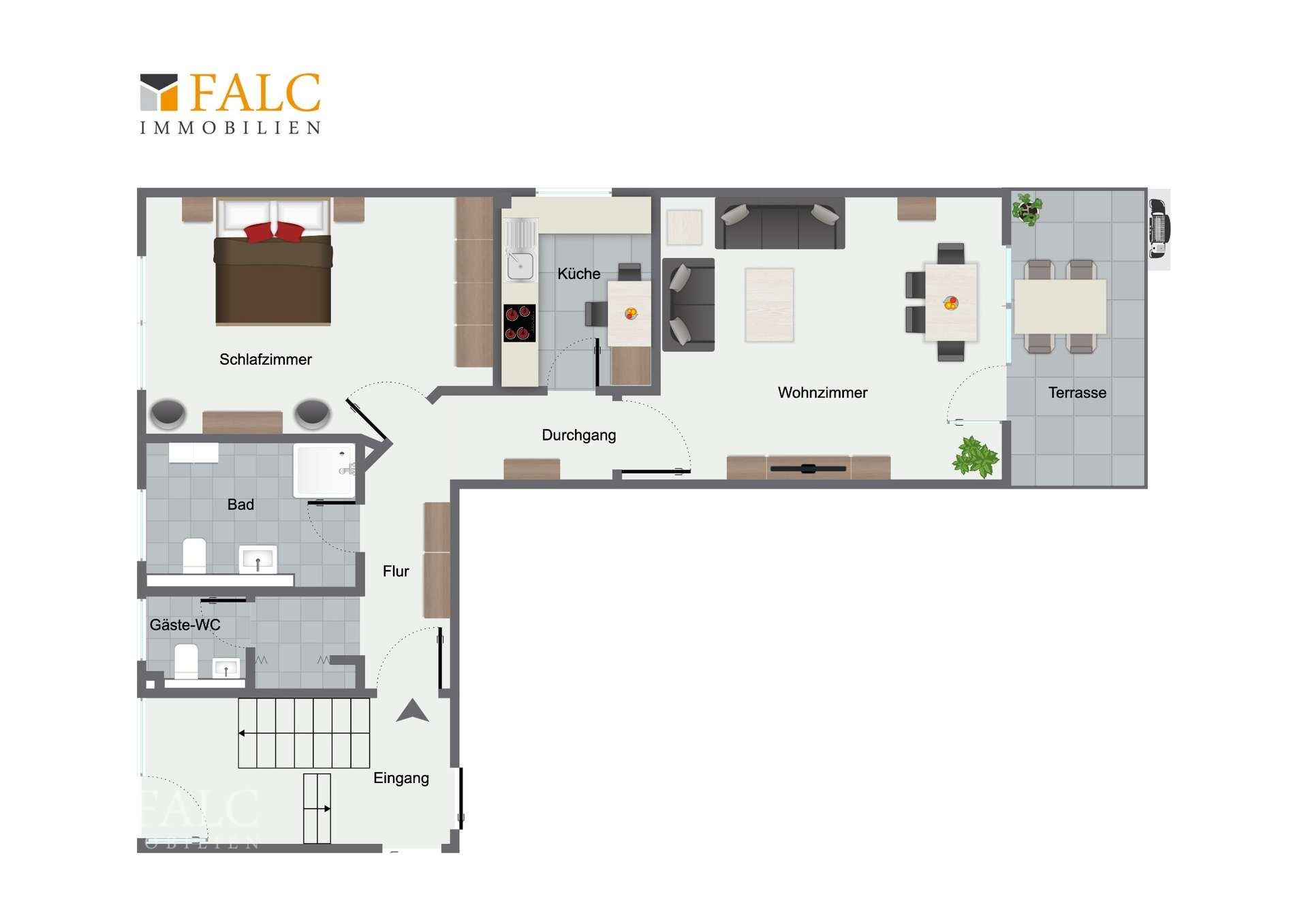 - Außenbereich: Terrasse mit Zugang zum Garten