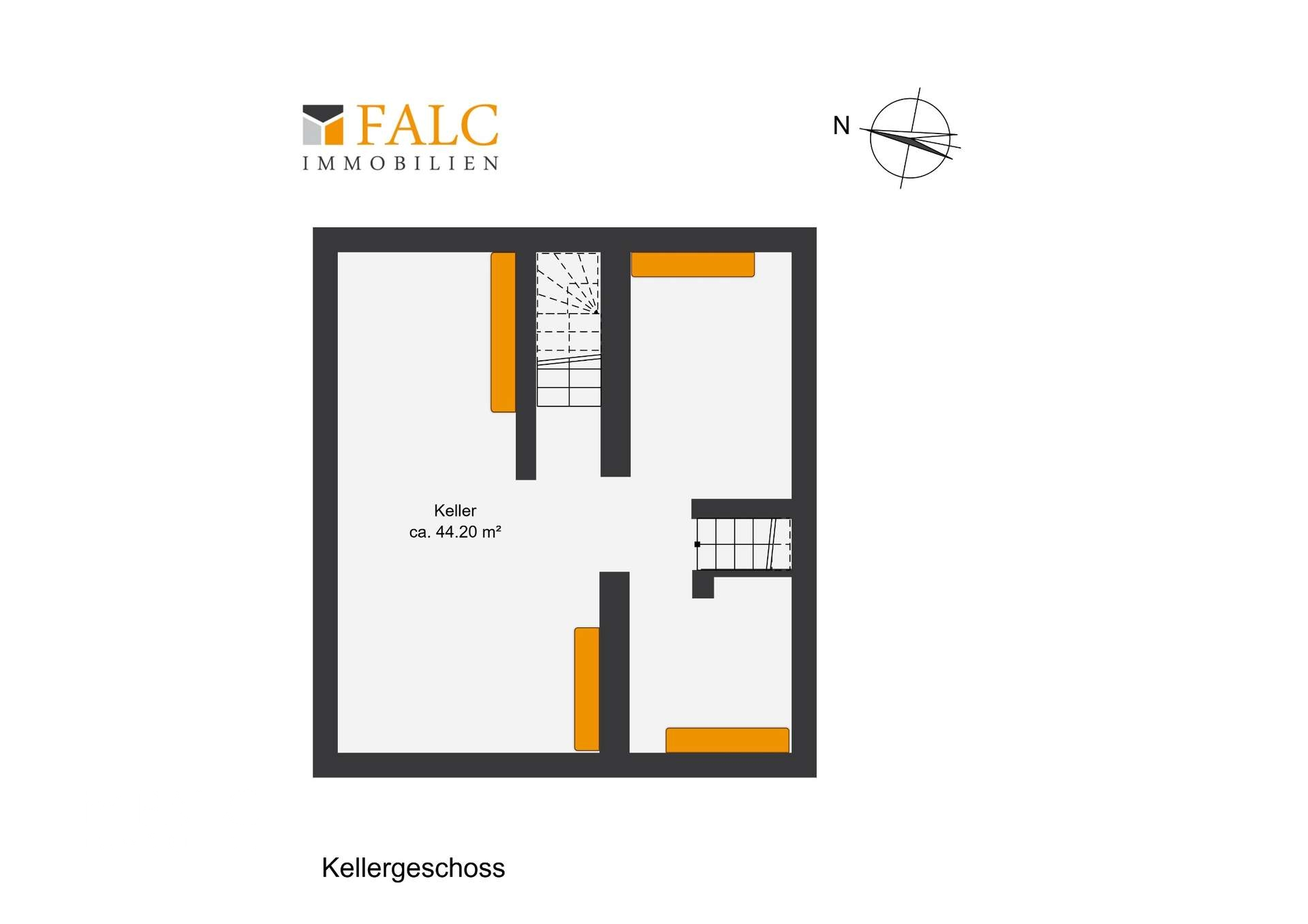 Ein kleiner Keller ist bequem von der Küche aus zugänglich und sorgt für weiteren Stauraum.