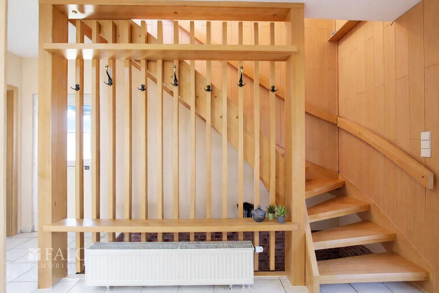 Schon beim Betreten empfängt Sie ein großzügiger Eingangsbereich, der Raum für eine Garderobe bietet und bereits beim Eintreten die helle und freundliche Atmosphäre des Hauses spürbar werden lässt.