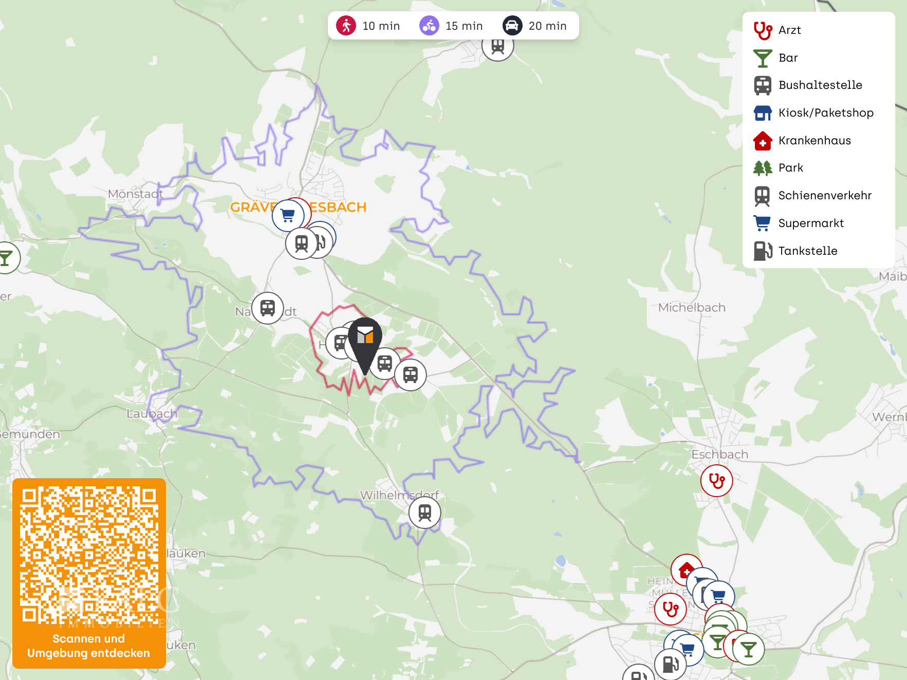 Grävenwiesbach selbst ist eine charmante Gemeinde im Hochtaunuskreis, die durch ihre ruhige und naturnahe Lage besticht. Die Region bietet eine hohe Lebensqualität mit einem ausgewogenen Verhältnis von ländlicher Idylle und städtischer Erreichbarkeit. Die Nähe zur Natur lädt zu ausgedehnten Spaziergängen und Freizeitaktivitäten im Freien ein, während die gute Verkehrsanbindung sowohl mit dem Auto als auch mit öffentlichen Verkehrsmitteln für Flexibilität sorgt. Der nächste Flughafen, Frankfurt am Main, ist in etwa 50 Kilometern erreichbar und bietet internationale Anbindungen.