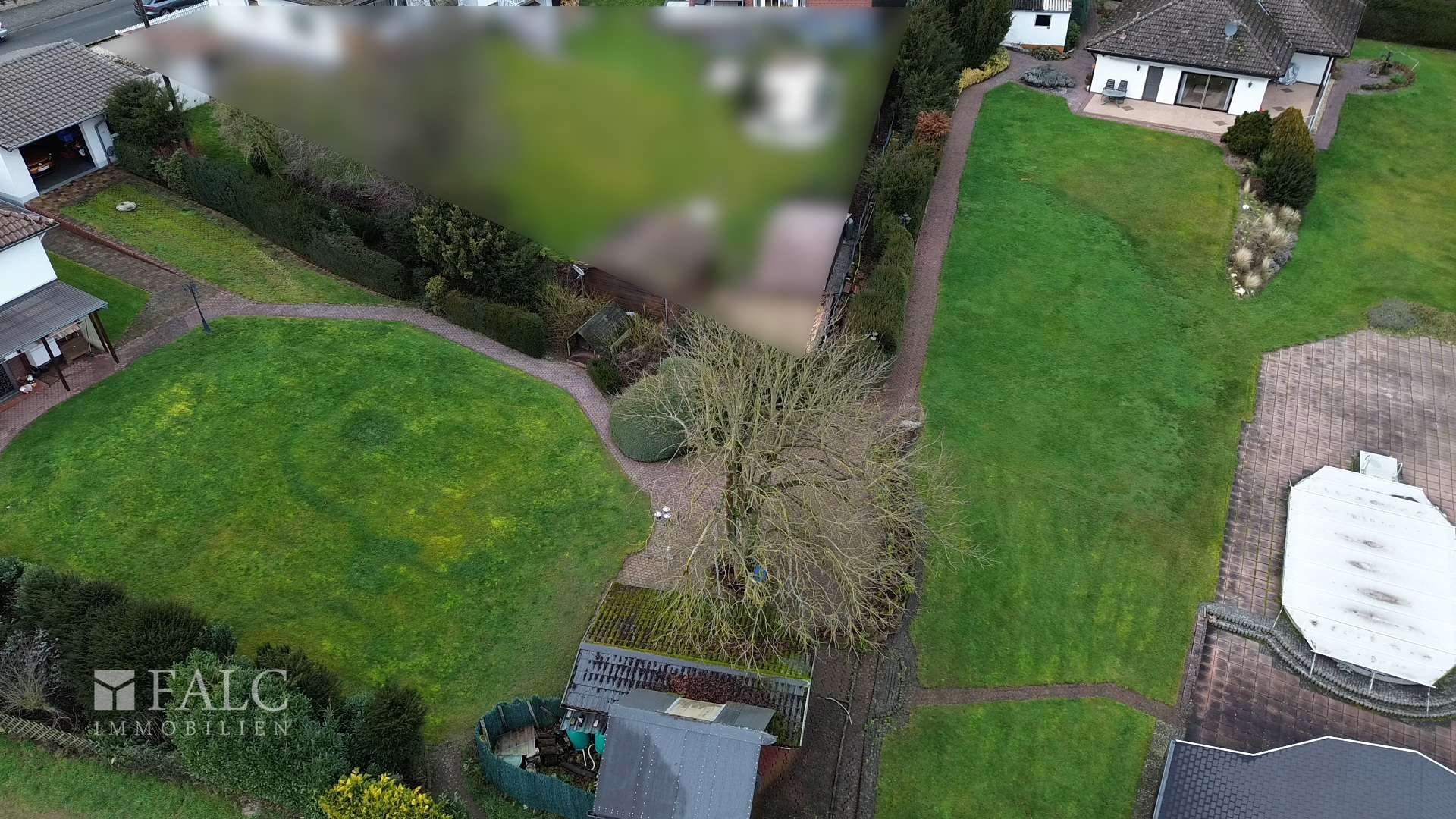 Das Gesamtareal umfasst drei unmittelbar aneinandergrenzende Flurstücke mit einer Gesamtfläche von 3.729 m². Die Grundstücke sind von zwei Seiten erschlossen und aktuell bebaut mit zwei Bestandsgebäuden aus den Jahren 1963 sowie 1984 (freistehende Winkelbungalows), einer hochwertigen Doppelgarage aus dem Jahr 2006 sowie einem Schwimmbad und Gartenhäusern. Die vorhandene Bebauung ist im Rahmen einer Neubebauung durch den Erwerber zurückzubauen.