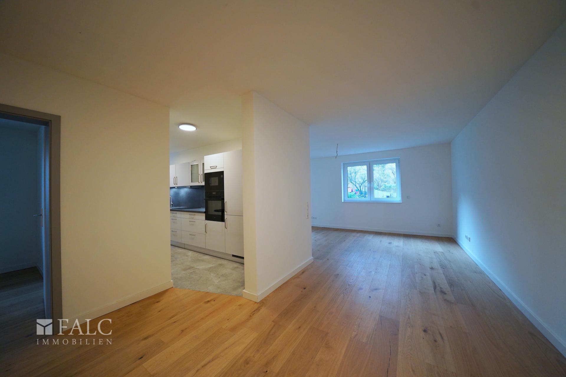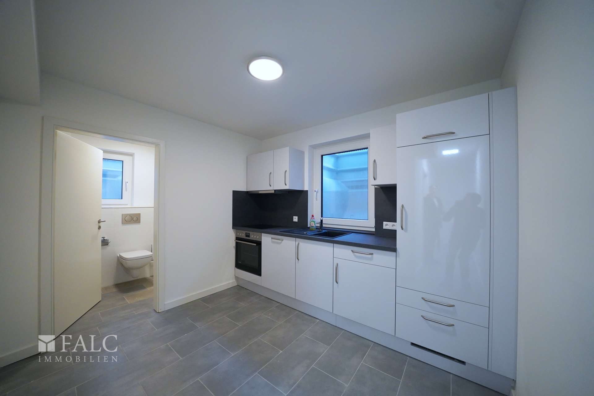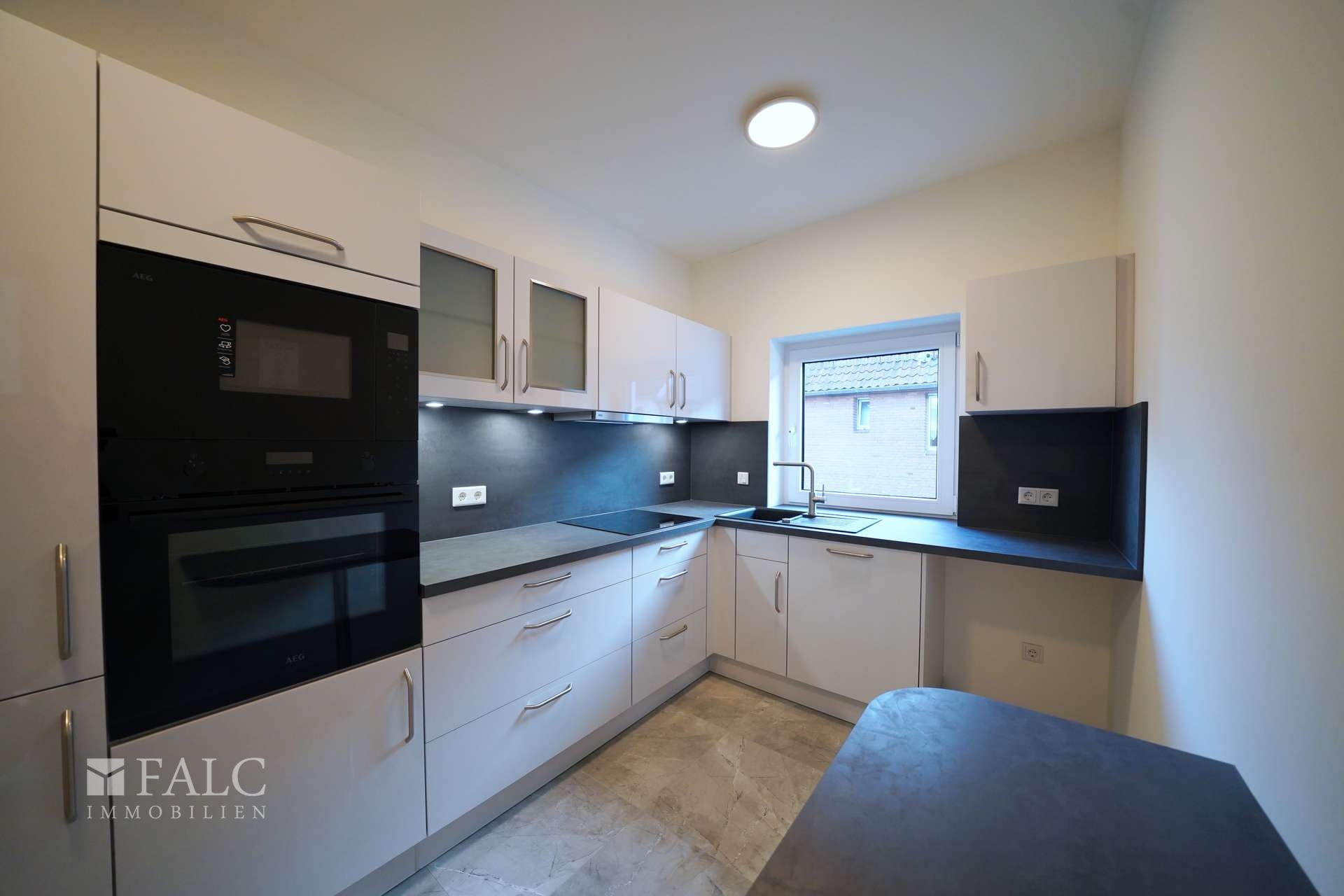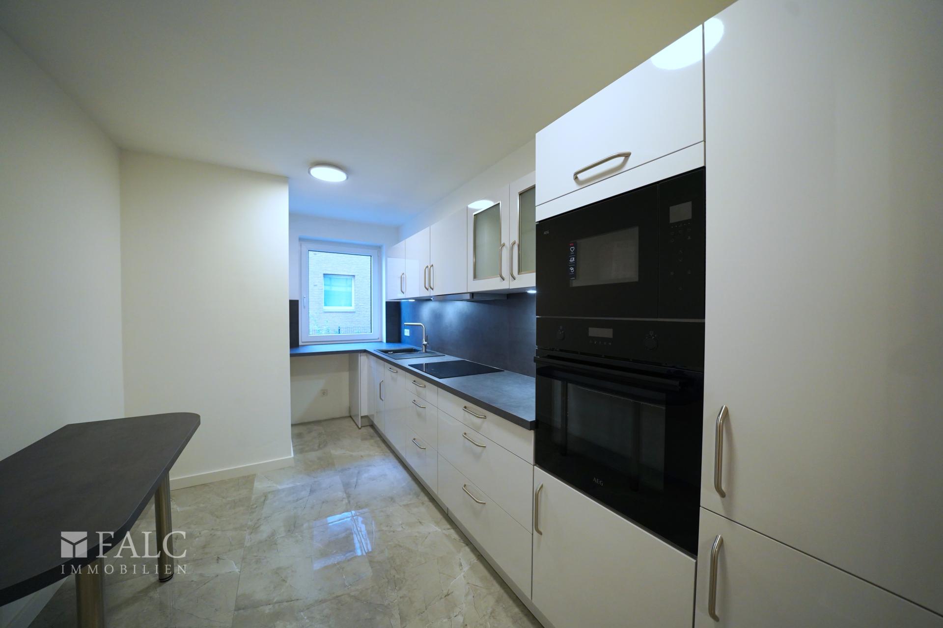 Angrenzend an den Wohnbereich befindet sich die funktional geschnittene Küche mit ca. 10 m², die optimale Arbeitsabläufe ermöglicht und mit allen nötigen Geräten modern ausgestattet ist.