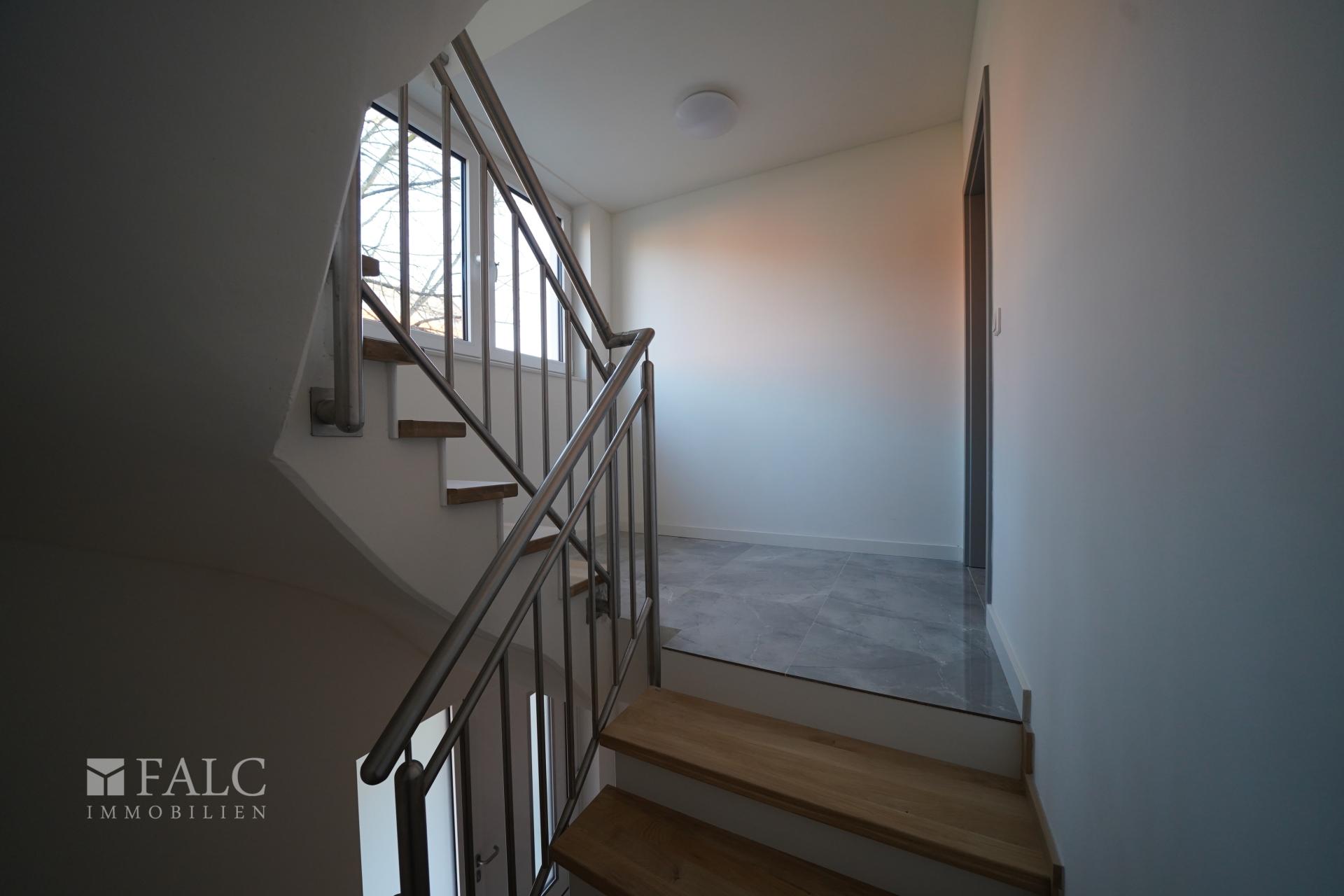 Beim Betreten des 2025 errichteten Mehrfamilienhauses empfängt Sie ein gepflegtes Treppenhaus mit klarer Linienführung und hochwertiger Verarbeitung.