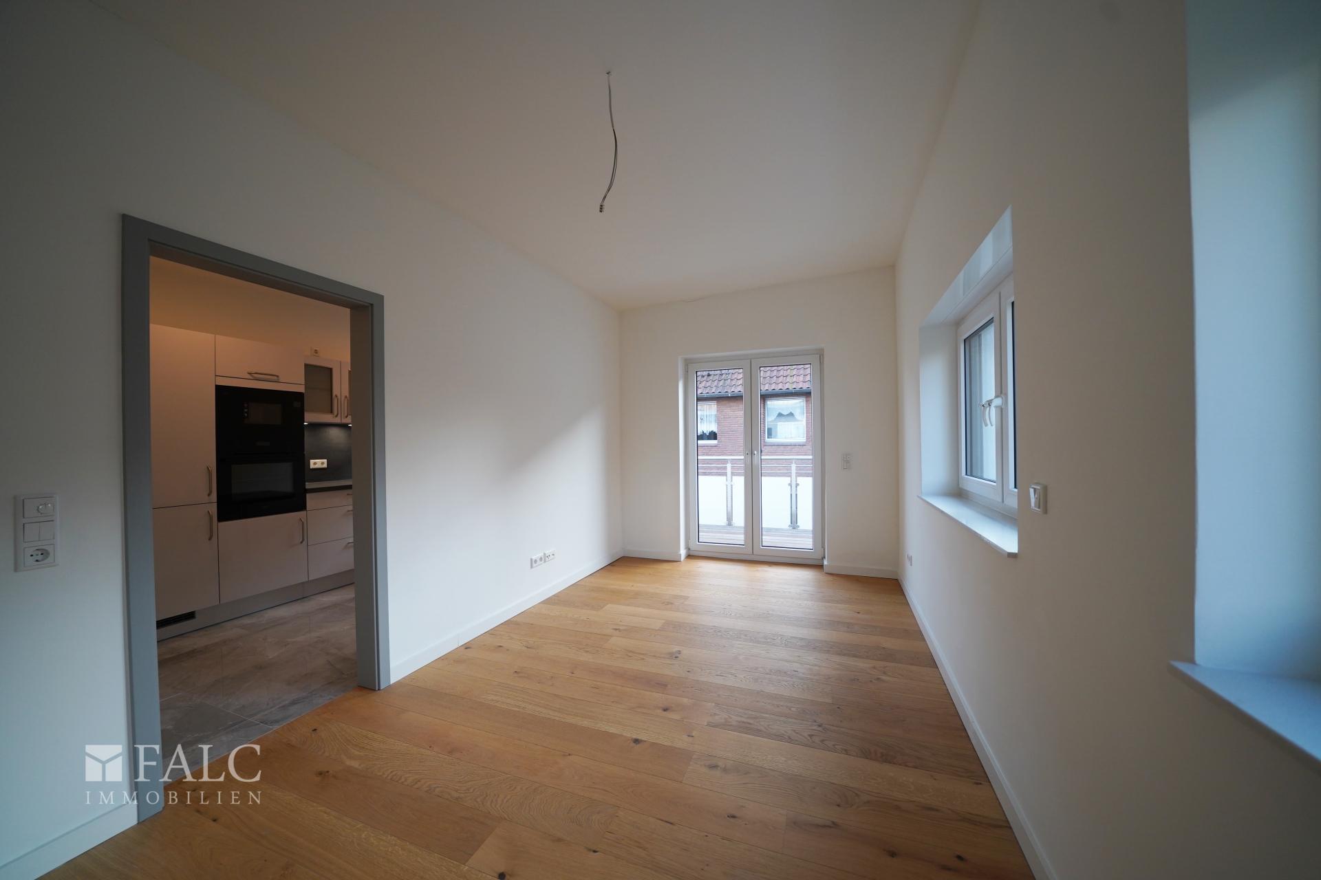 Über eine stilvolle Treppe erreichen Sie das erste Obergeschoss, wo sich eine schön geschnittene Drei-Zimmer-Wohnung befindet. Ein weiterer Wohn- und Essbereich mit ca. 31 m² empfängt Sie offen. Auch hier sorgt ein Balkon für eine angenehme Erweiterung des Wohnraums nach draußen. Die Küche auf dieser Etage bietet ebenfalls alle notwendigen Annehmlichkeiten, mit modernen Geräten und ausreichend Platz.