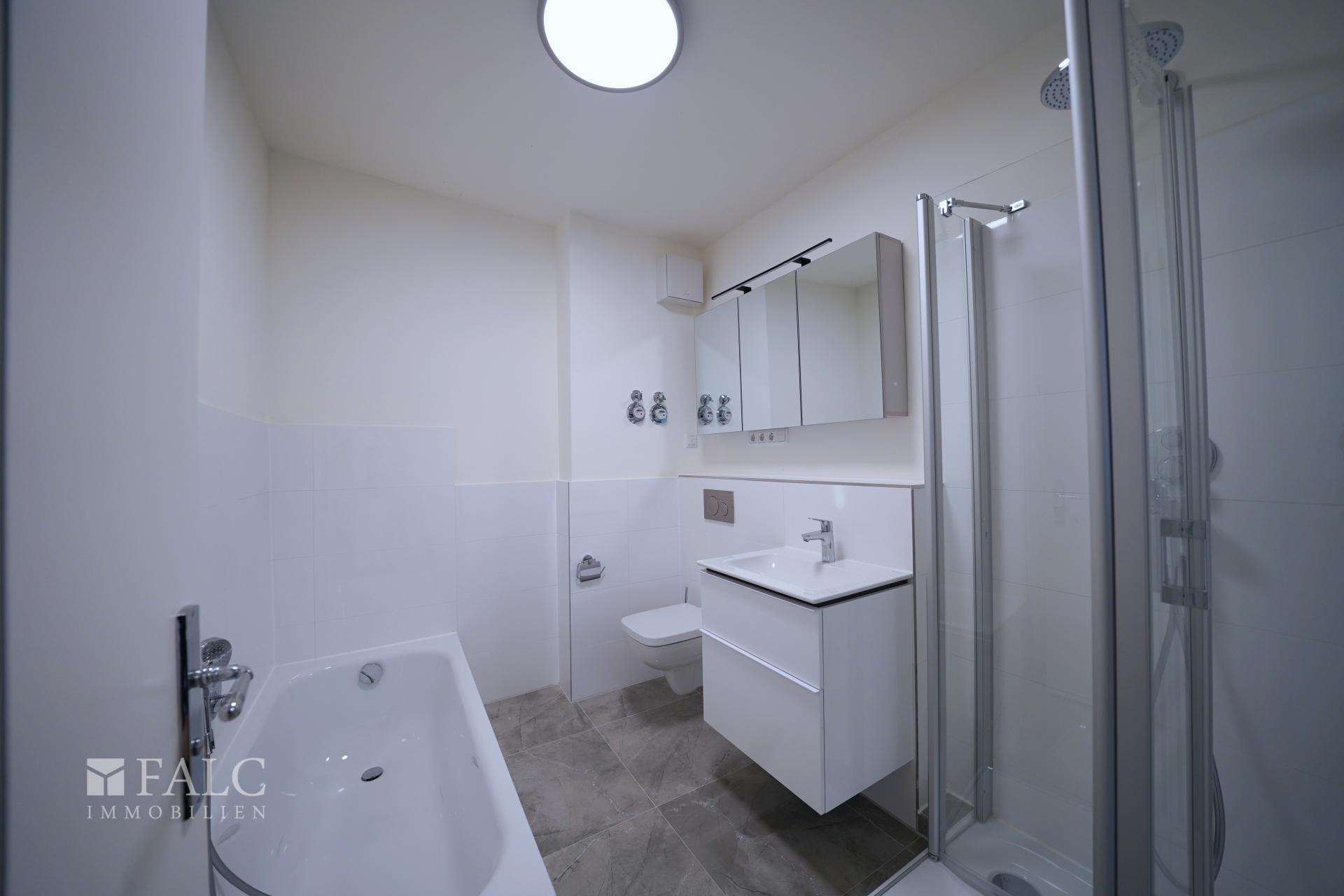 - Bäder hochwertig mit Kaldewei, Hansgrohe und Geberit ausgestattet
