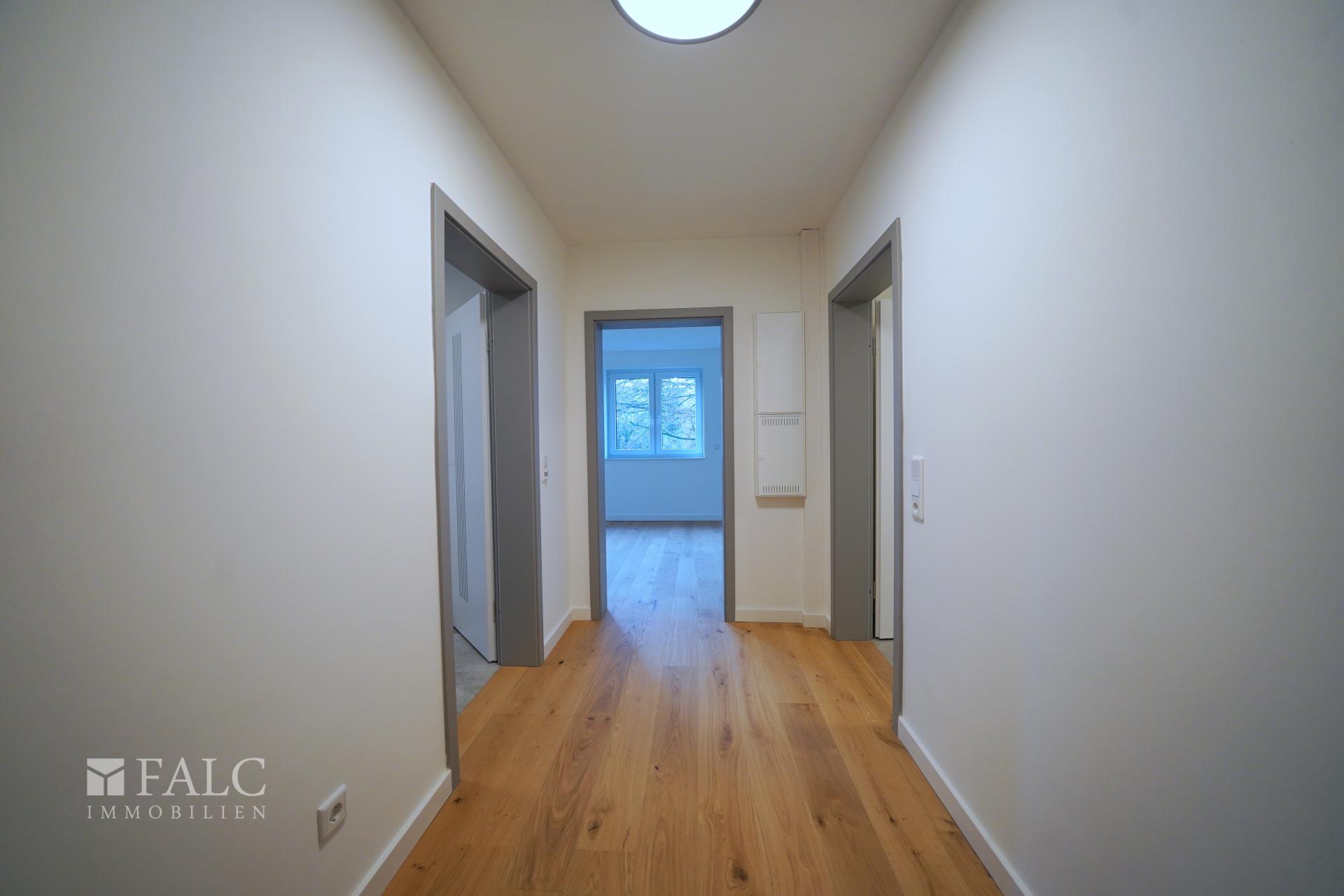 Ein modernes Vollbad, ausgestattet mit Badewanne und Dusche, rundet das Raumangebot dieser Wohnung ab. Der Flur verbindet alle Räume effizient und unterstreicht den durchdachten Grundriss.