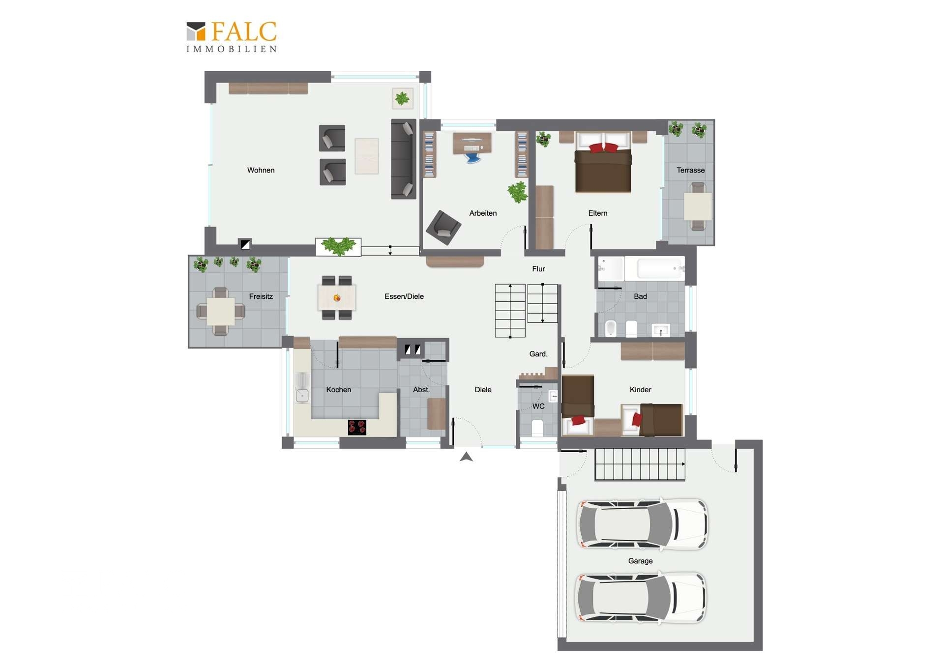 - Direktzugang vom Keller in den Garten und zur Doppelgarage