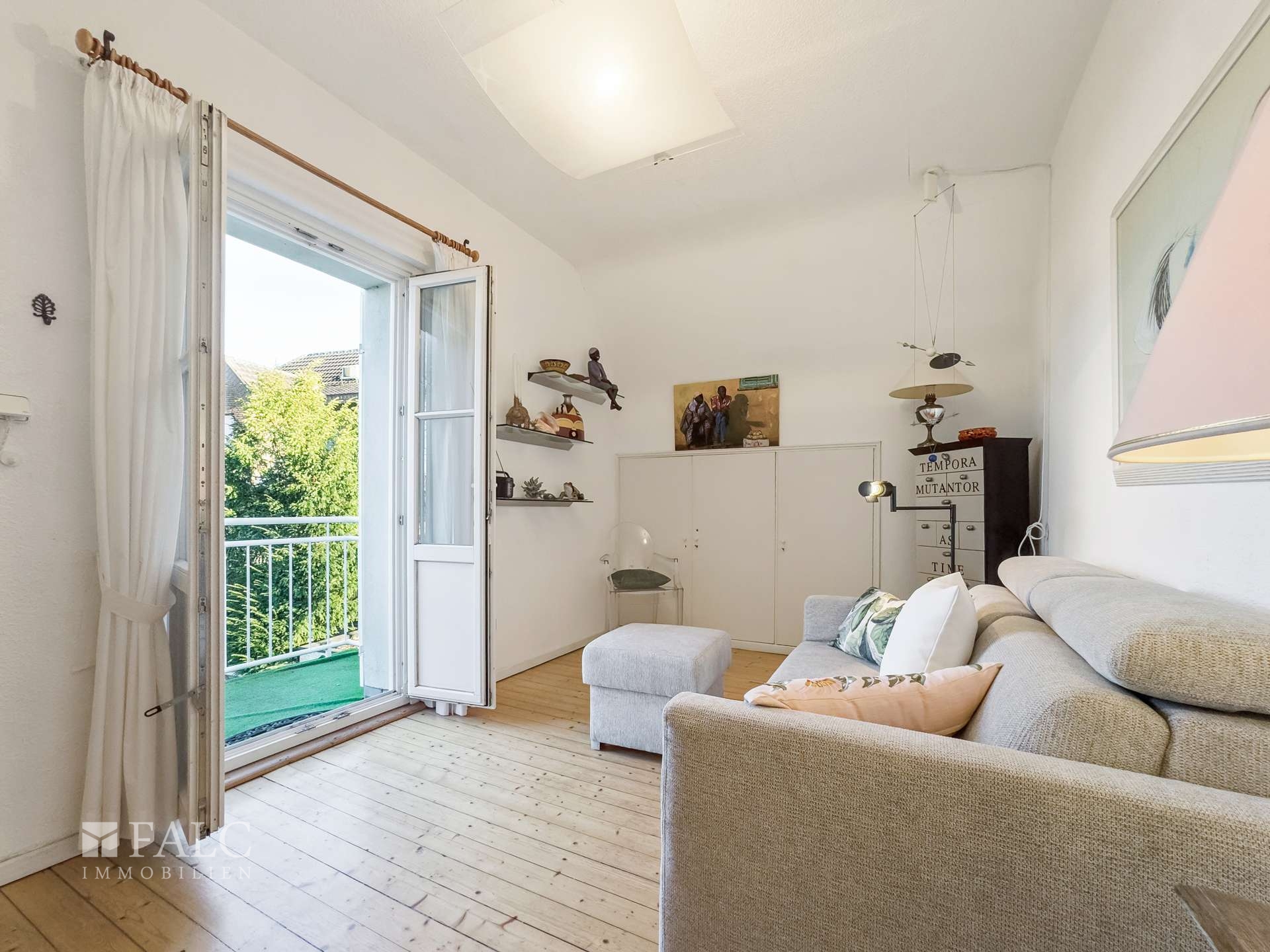Direkt hinter dem Garten beginnt ein breiter Bereich aus Grünflächen, Gärten und Baumbeständen, die den Blick in Richtung Natur öffnen und dem Grundstück zusätzlich eine geschützte, private Atmosphäre verleihen – trotz der zentralen Lage. Kinder finden hier Raum zum Spielen, Spaziergänge und Spazierfahrten sind ohne Straßenlärm möglich, und die unmittelbare Umgebung wirkt einladend und lebendig zugleich.