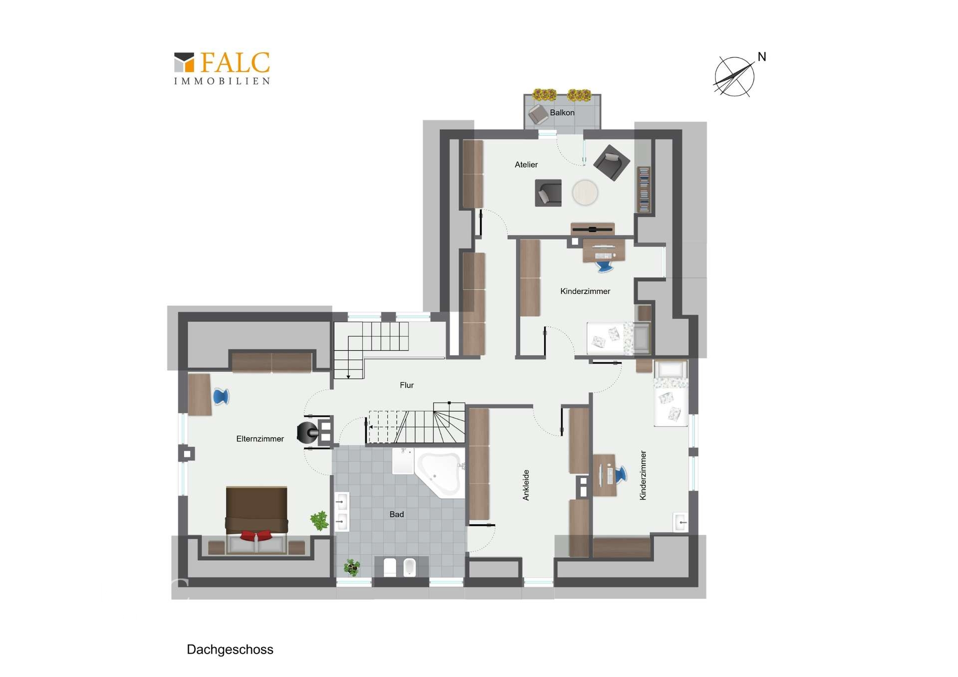 - Dachgeschoss mit 5 Schlafzimmern, darunter: