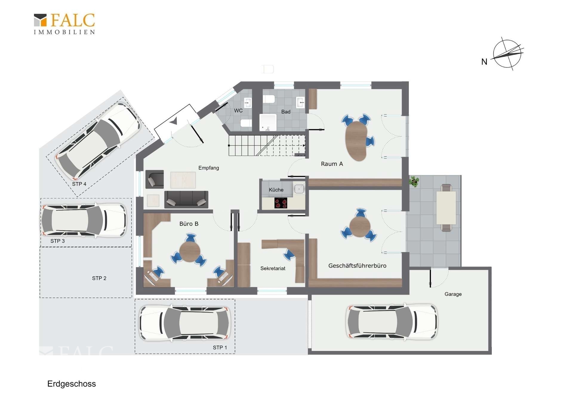1. Sekretariat und Geschäftsführerbüro mit kleiner Terrasse FREI