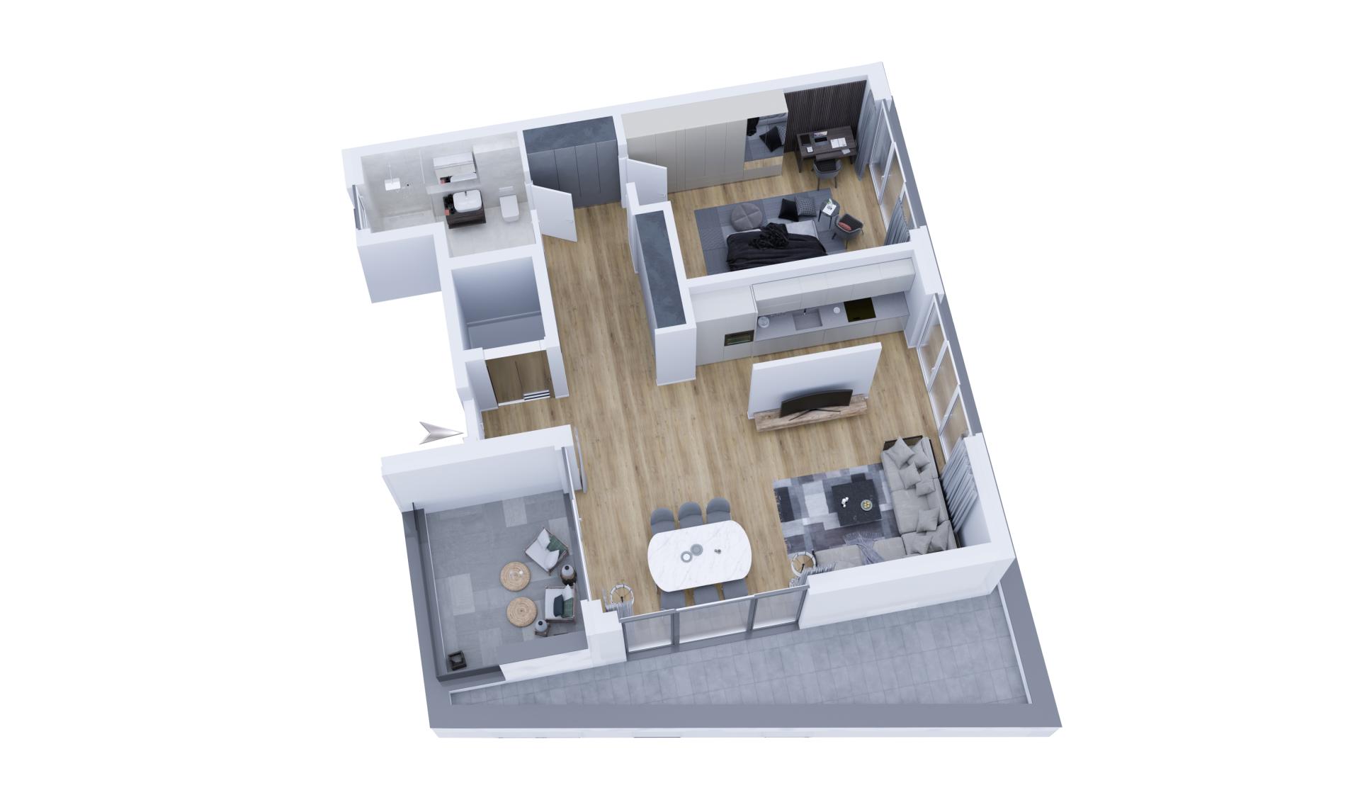 Über das einladende Entrée gelangen Sie zum offenen Wohn-Essbereich sowie der Küche.