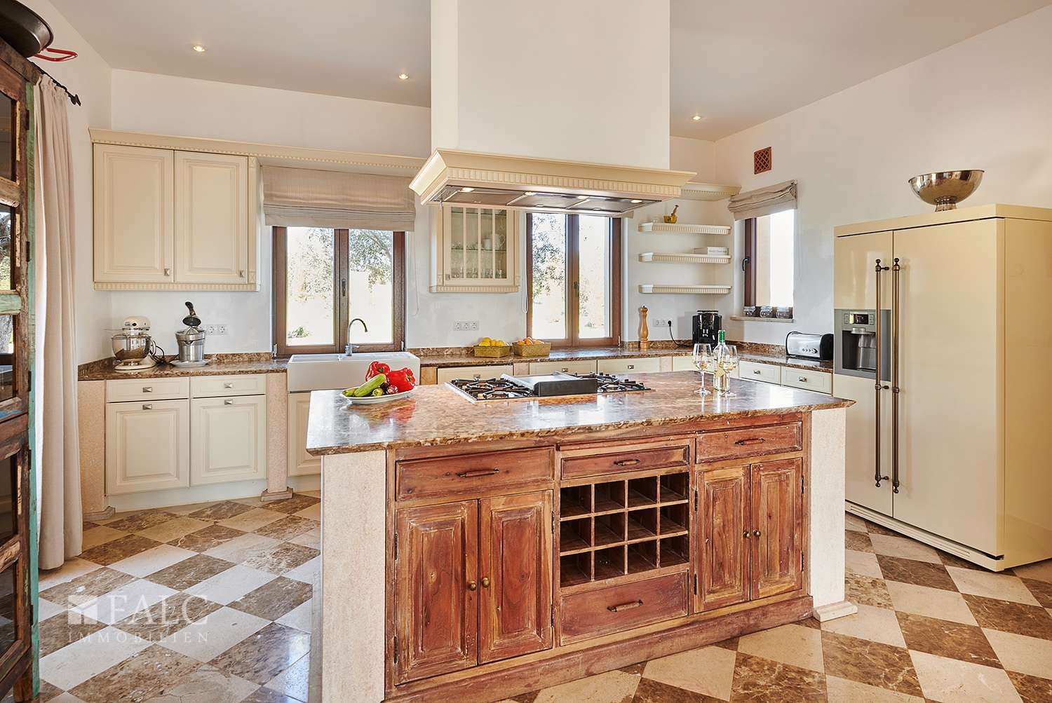 Schon beim Betreten der großzügigen Eingangshalle spürt man die besondere Atmosphäre dieses Anwesens. Auf 450 Quadratmetern Wohnfläche bietet die Finca Raum für bis zu zehn Personen – ideal für Familien, Freunde oder Gäste, die das Besondere suchen. Der offene Wohn- und Essbereich mit angrenzender Designerküche lädt zum Verweilen, Kochen und Genießen ein. Hochwertige Materialien, liebevolle Details und eine durchdachte Raumaufteilung schaffen ein Wohngefühl auf höchstem Niveau.