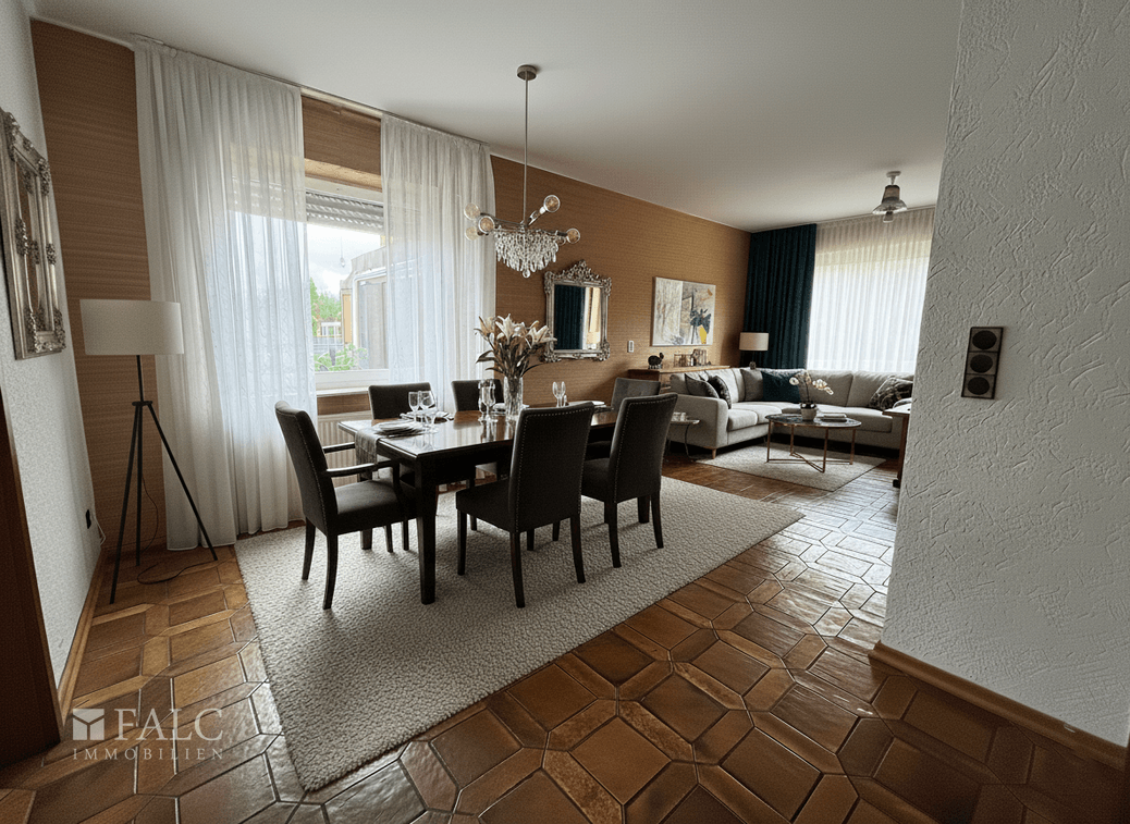 Beim Betreten dieses charmanten Hauses werden Sie von einem einladenden Eingangsbereich empfangen, der direkt in den geräumigen Essbereich führt. Hier bietet sich ausreichend Platz für einen großen Esstisch.