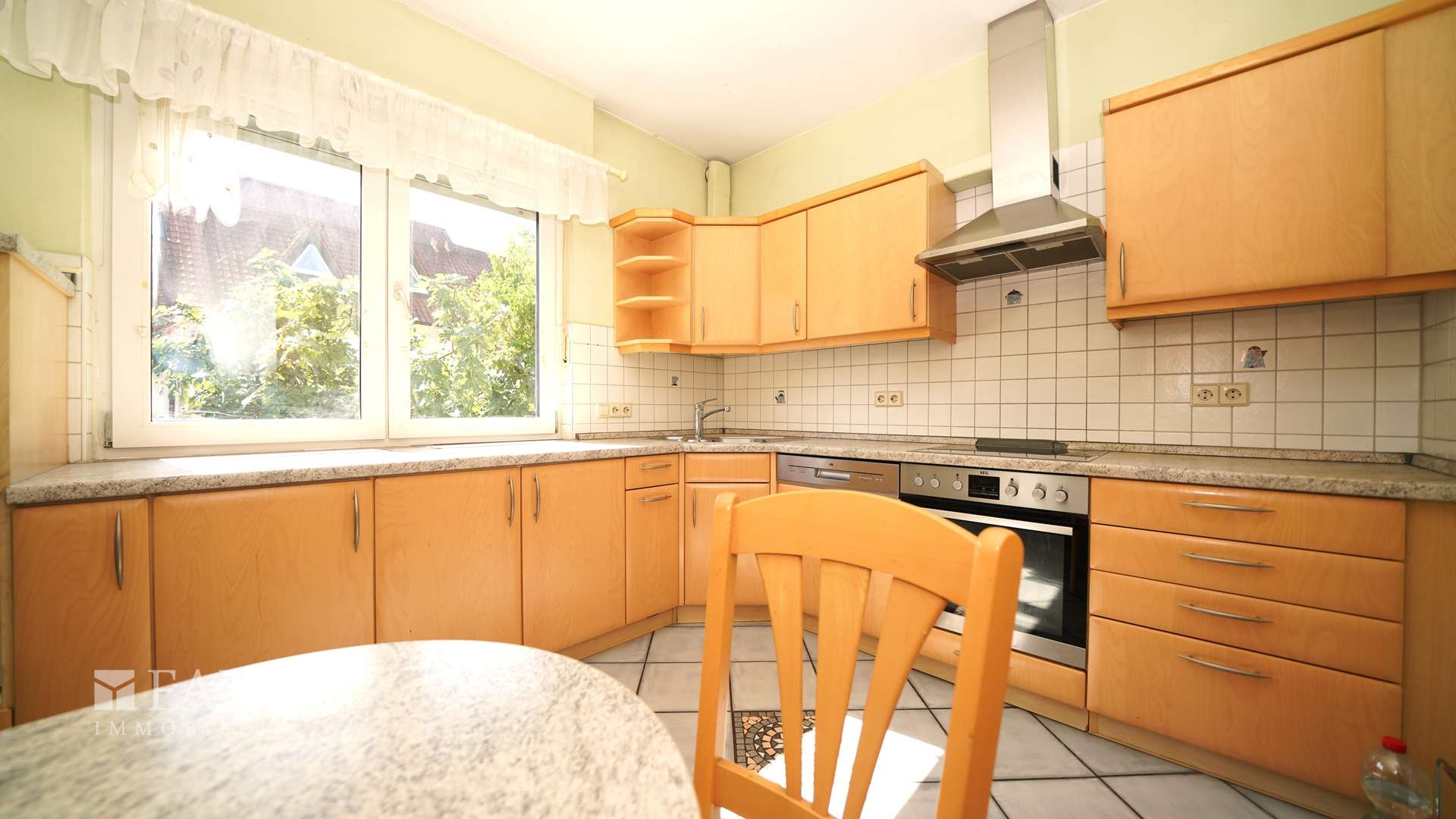 Die Einbauküche ist in einem sehr guten Zustand und verfügt über einen Geschirrspüler, Kühlschrank, Cerankochfeld, Umluftbackofen, passende Ober- und Unterschränke sowie einen kleinen Essplatz. Geschirrspüler und Herd wurden vor ca. zwei Jahren erneuert.