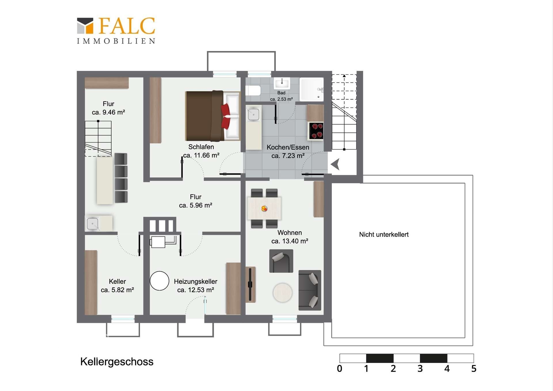 Zusätzlich befindet sich im Untergeschoss eine ca. 34 m² Fläche mit separatem Außenzugang. Hier könnte man zahlreiche Hobbyräume gestalten.
