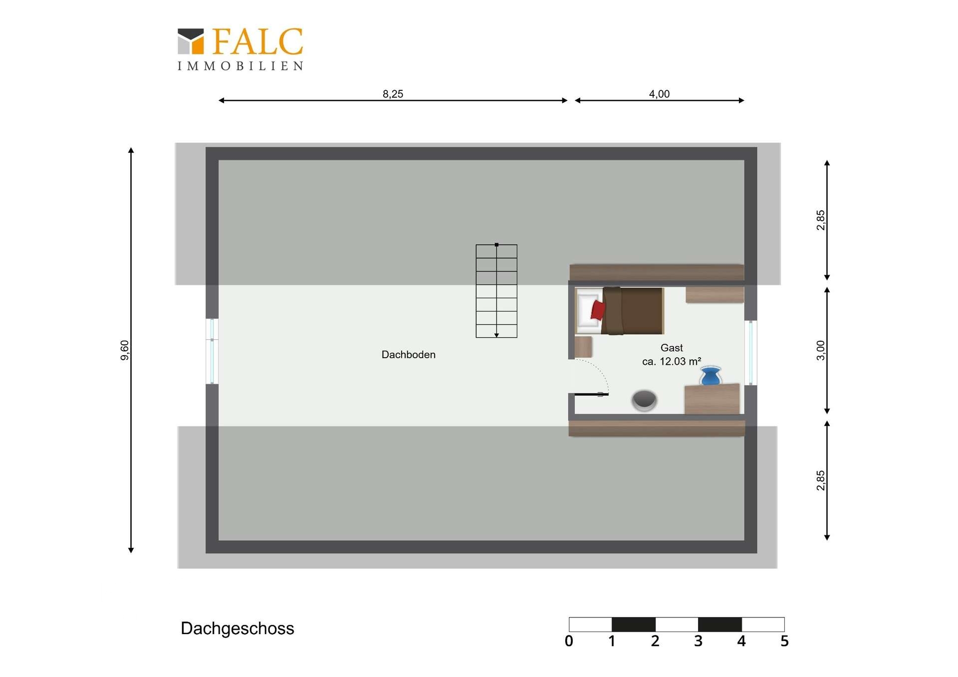 Abschließend führt eine Leiter vom Flur in das Dachgeschoss, wo sich zwei weitere gemütliche Zimmer befinden – perfekt als zusätzliche Schlafzimmer, Hobbyräume oder Rückzugsorte für Gäste.