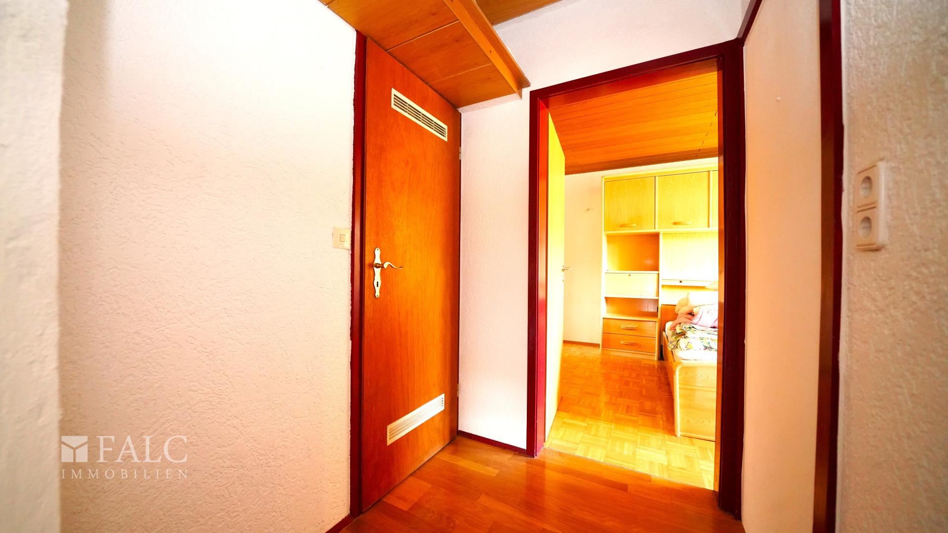 Am Ende des Flurs eröffnet sich ein Vorraum, der sich hervorragend als Abstellfläche oder Empfangsbereich für Gäste anbietet – insbesondere, wenn man den zweiten, rückwärtigen Zugang zum Haus nutzt.