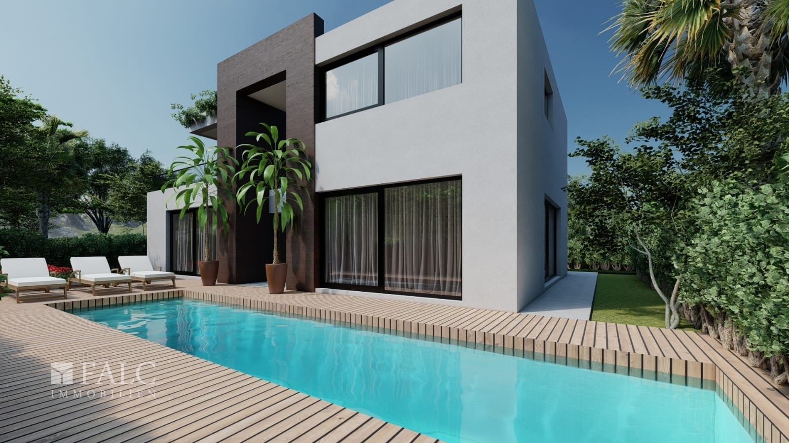 Die Villa erstreckt sich über zwei Etagen mit einer Nettowohnfläche von ca. 195 m² und liegt auf einem gepflegten Grundstück von 391 m². Das offen gestaltete Erdgeschoss überzeugt mit einem großzügigen Wohnbereich inklusive moderner Küche und Essbereich. Ergänzt wird diese Ebene durch ein Schlafzimmer mit eigenem Badezimmer, einen Fitnessraum, ein Ankleidezimmer mit zwei separaten WCs sowie einen exklusiven Wellnessbereich mit Sauna.