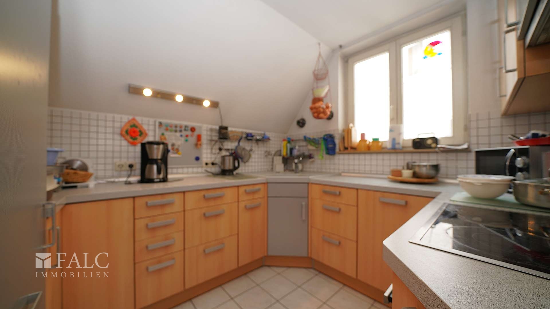 Die Wohnung verfügt über drei Zimmer, die flexibel genutzt werden können. Das ca. 17 m² große Elternschlafzimmer im Dachgeschoss bietet Privatsphäre und Ruhe. Ein weiteres Zimmer mit ca. 10 m² eignet sich hervorragend als Kinderzimmer oder Büro. Hochwertige Bodenbeläge aus Laminat und Fliesen verleihen den Räumen eine elegante Note.
