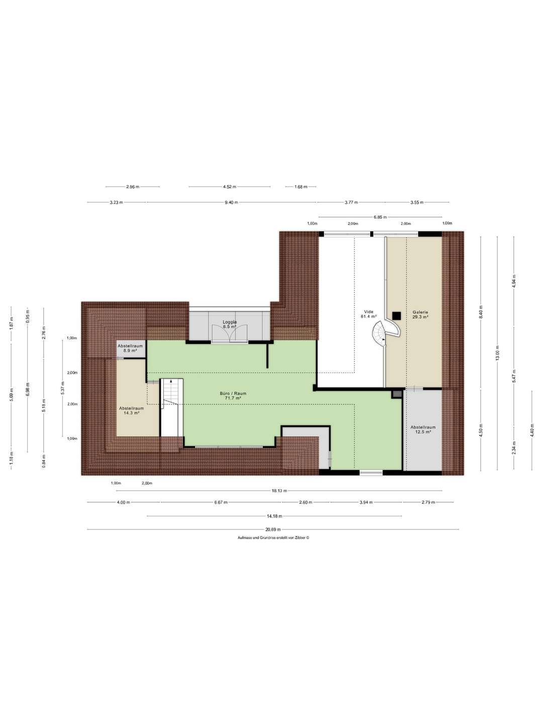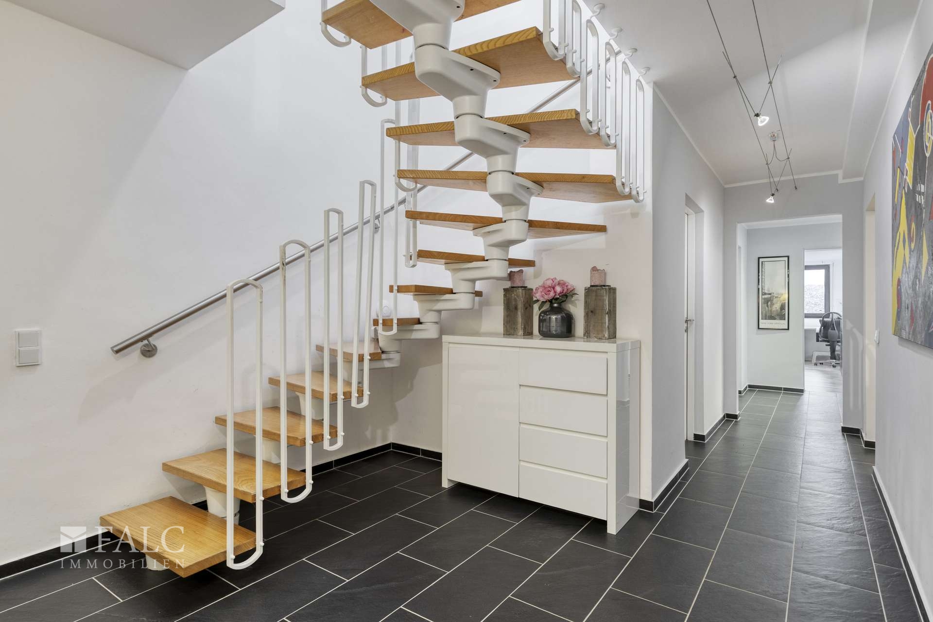 - Obergeschoss: zwei gut aufteilbare Bereiche mit Loggia, ideal für Büro-, Praxis- oder Ateliernutzung