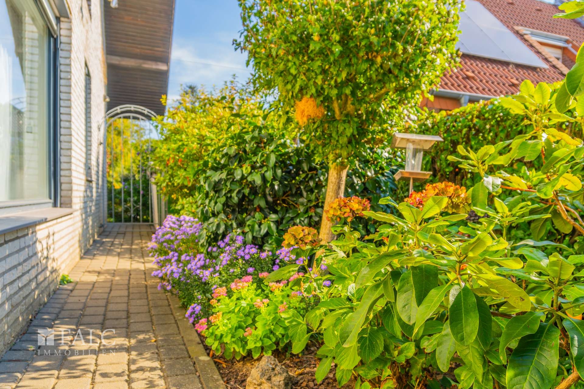 Das Esszimmer öffnet sich in den großzügigen Garten, der mit einer sonnigen Terrasse, einem Gartenhaus und einem praktischen Kellerabgang begeistert. Ein Gartentor ermöglicht zudem den direkten Zugang zum vorderen Hauseingang.