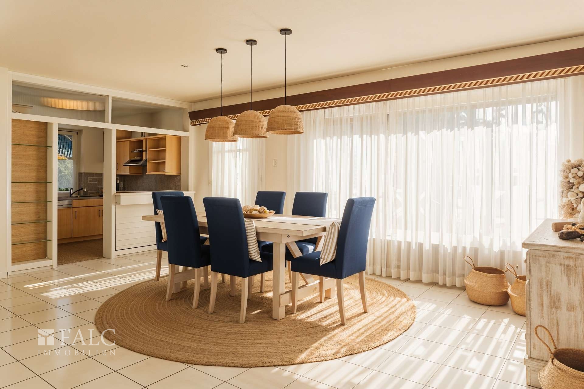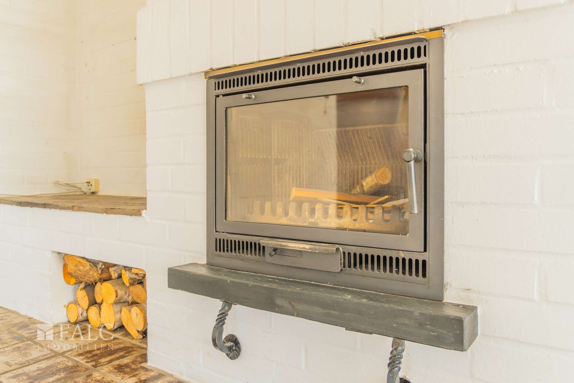 Vom Eingangsbereich gelangen Sie direkt in den hellen und großen Wohn- und Essbereich mit Kamin – ein Ort der Gemütlichkeit, perfekt für entspannte Abende mit Familie und Freunden. Von hier aus gelangen Sie zu der Küche, die direkt an den Wohnbereich angrenzt.
