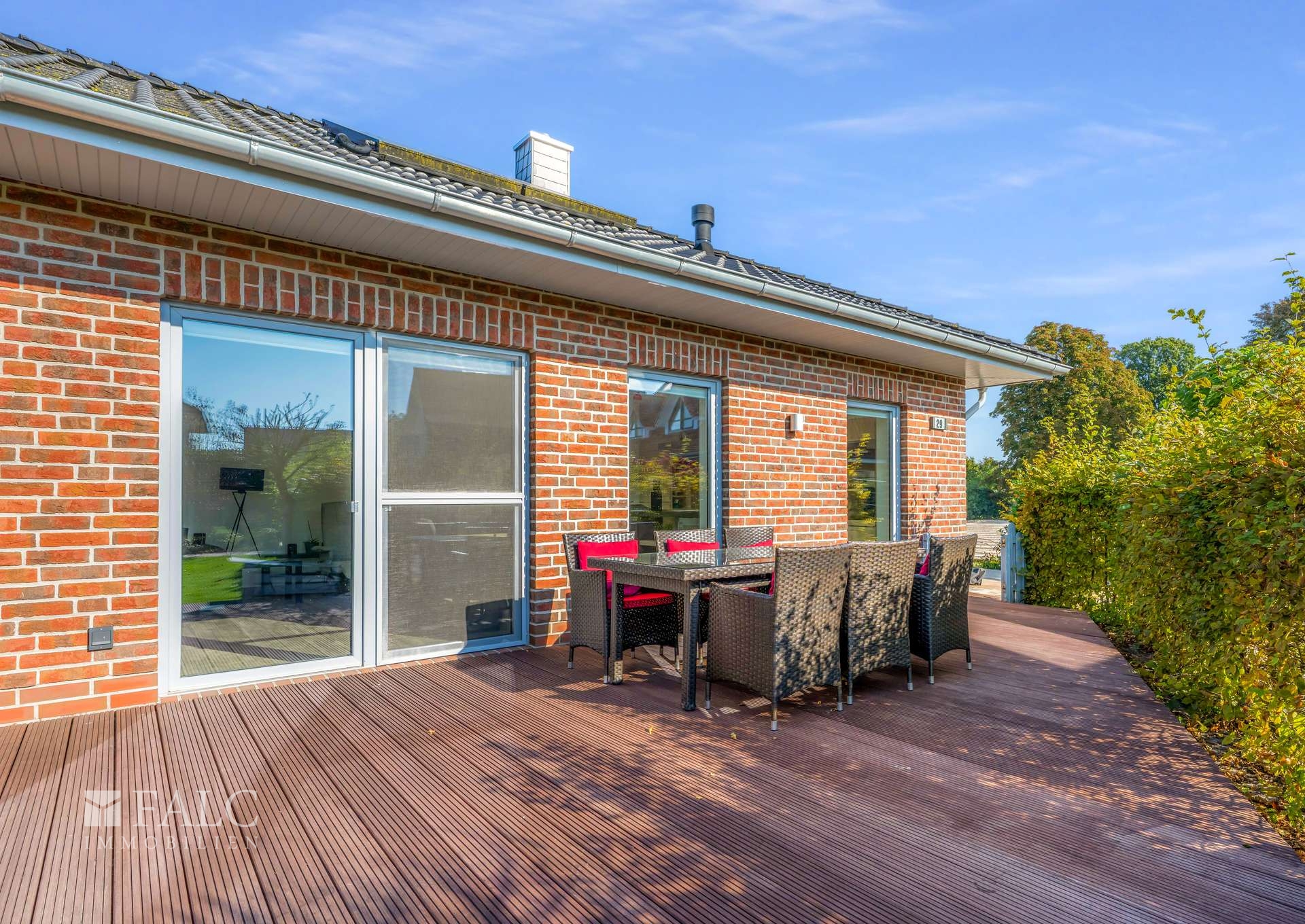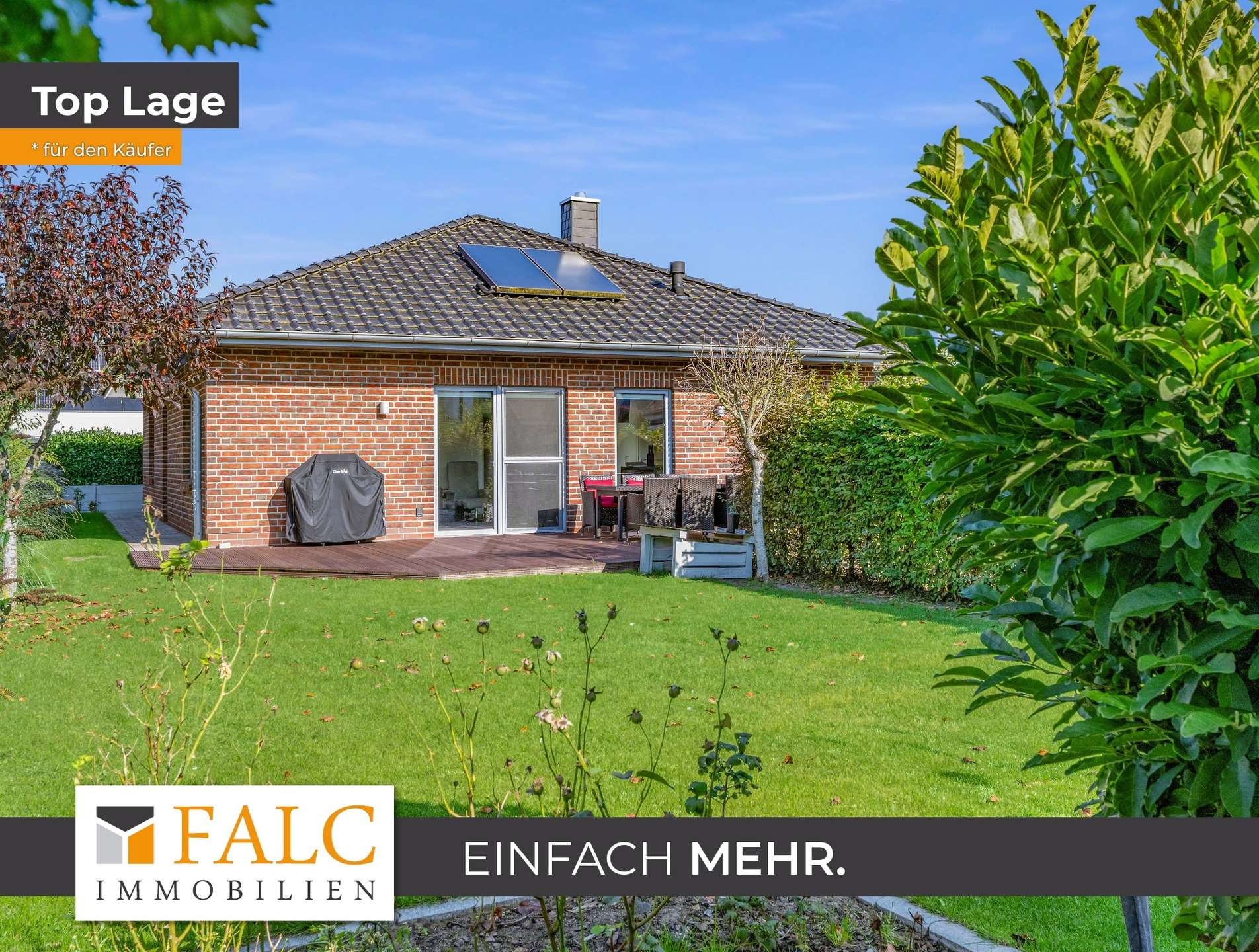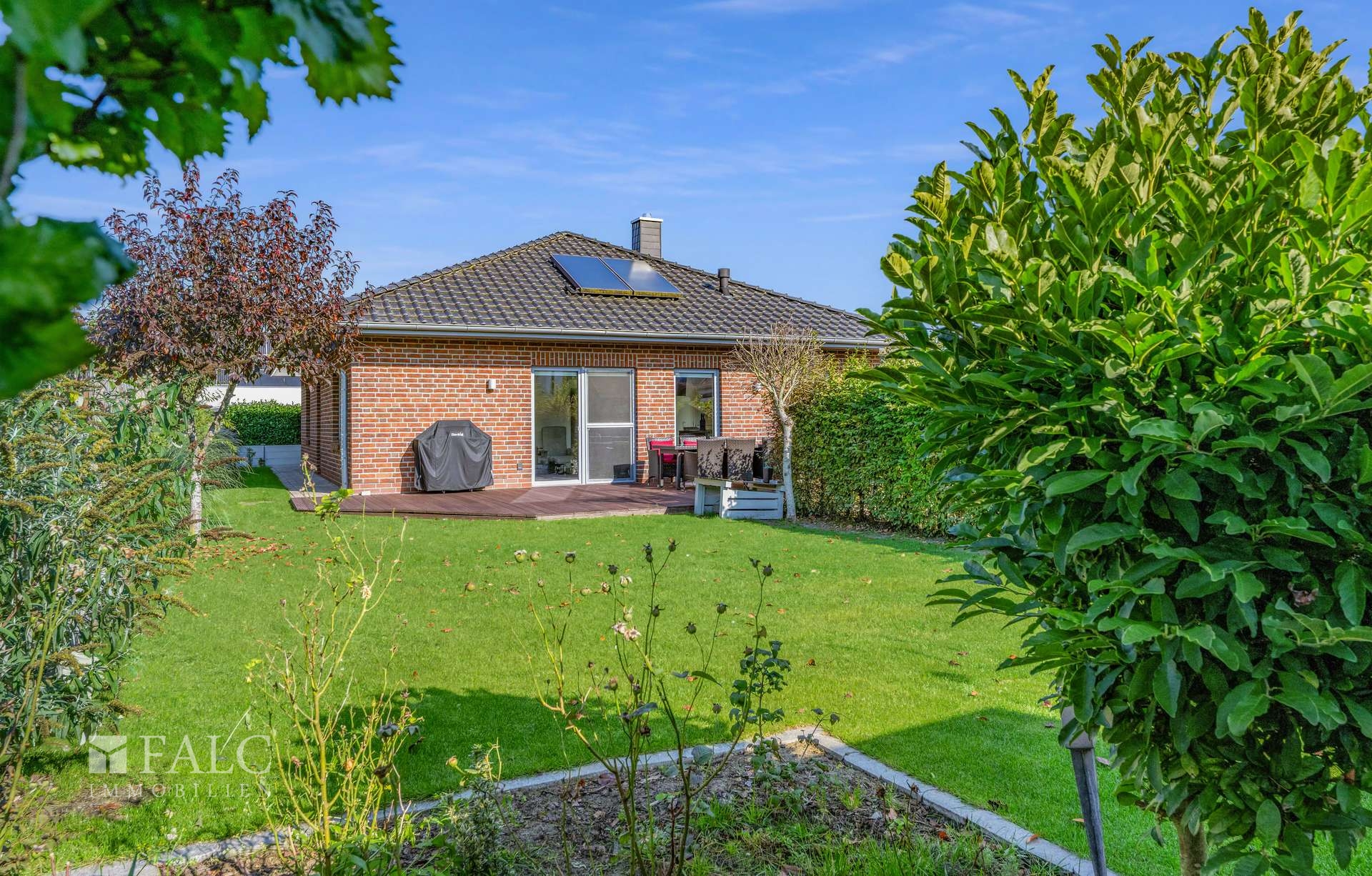 Auf dem ca. 594 m² großen Grundstück in ruhiger Sackgassenlage genießen Sie eine geschützte Gartenidylle, die zum Entspannen, Spielen oder zu geselligen Abenden im Freien einlädt.