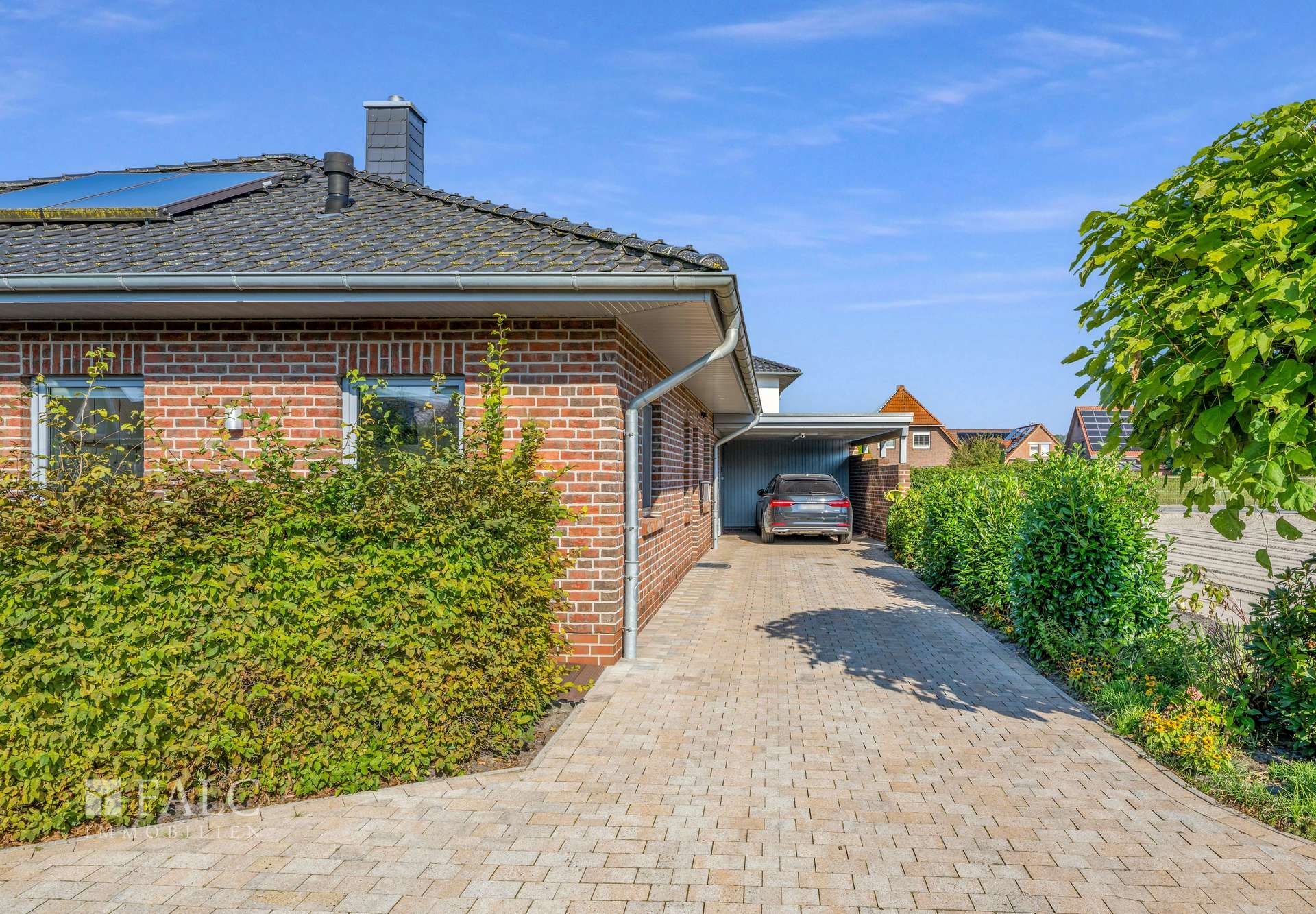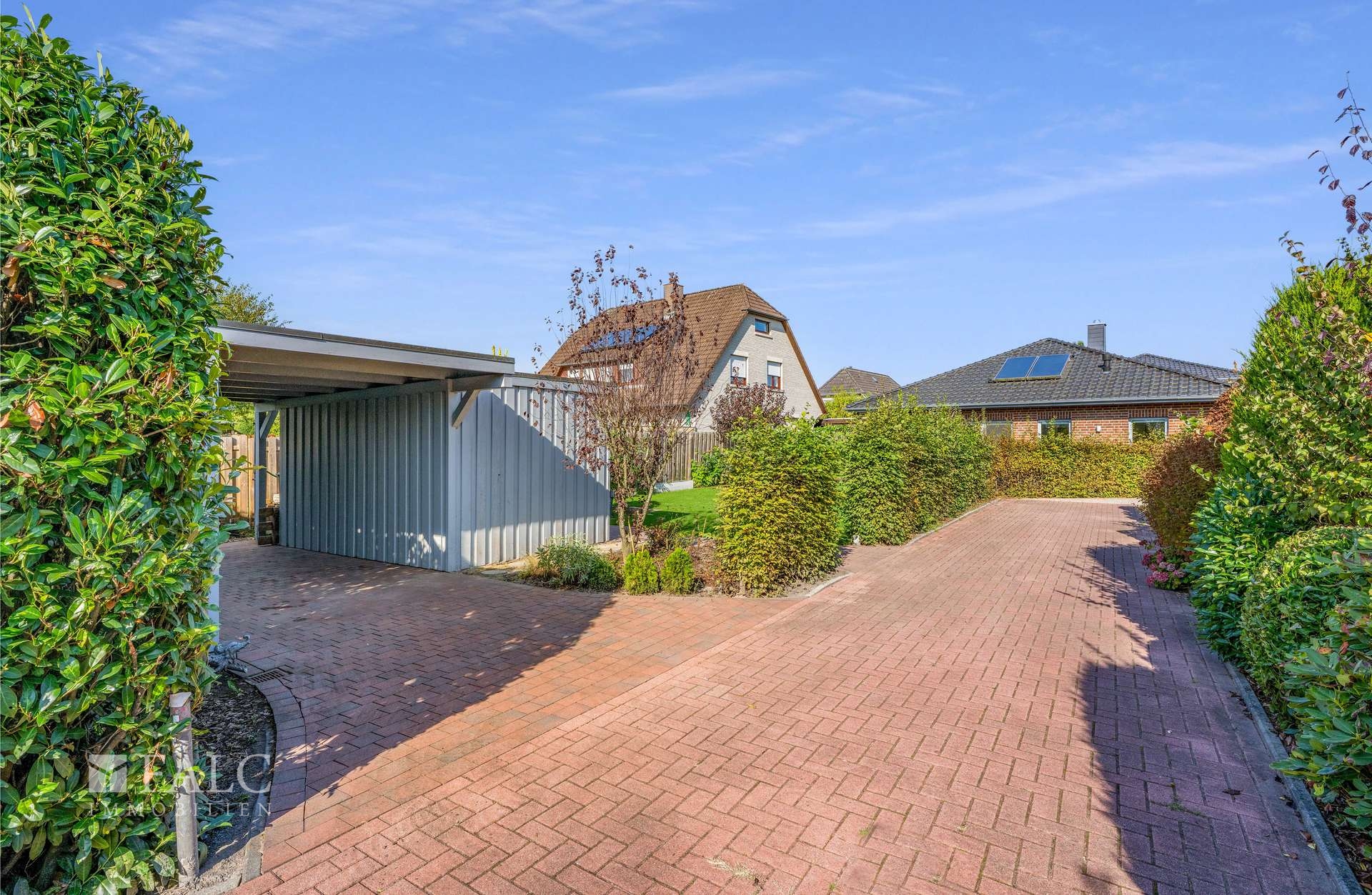 Besonders praktisch ist der ausgebaute und beheizte Dachboden mit zwei Veluxfenstern, der sich flexibel als Hobbyraum oder zusätzlicher Stauraum nutzen lässt. Zwei Carports direkt am Haus erleichtern den Alltag mit komfortablen Parkmöglichkeiten.