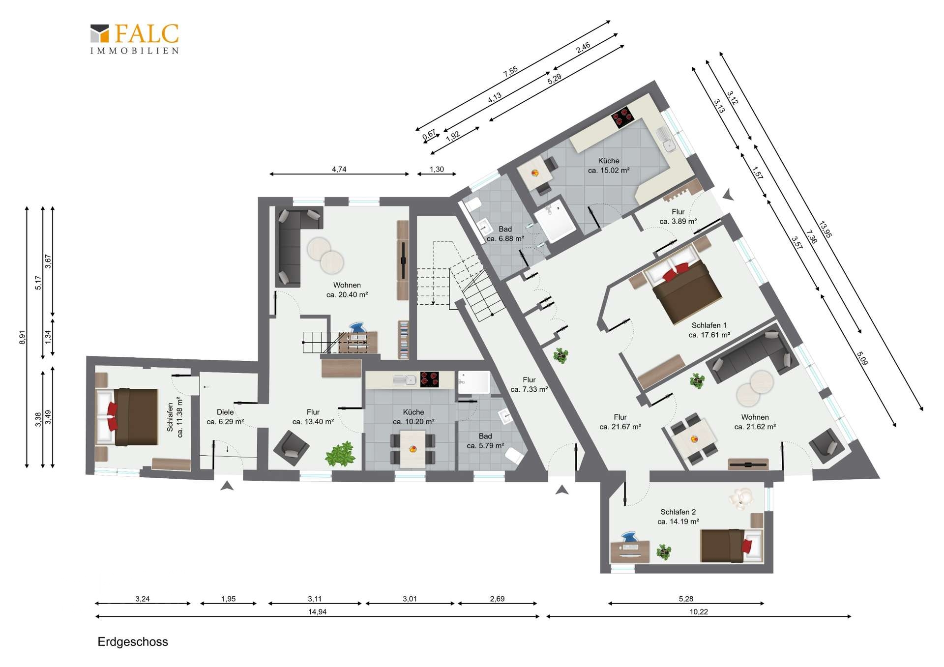 - Drei Wohneinheiten mit funktionalen Grundrissen