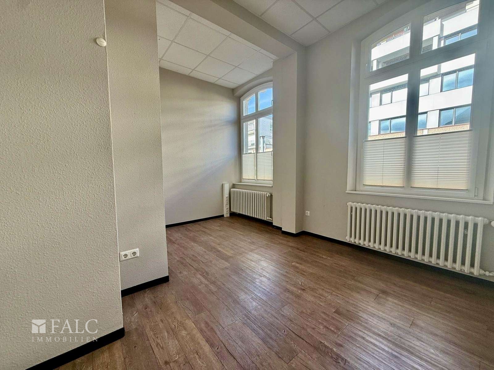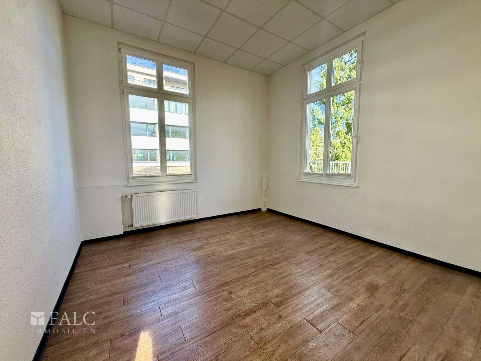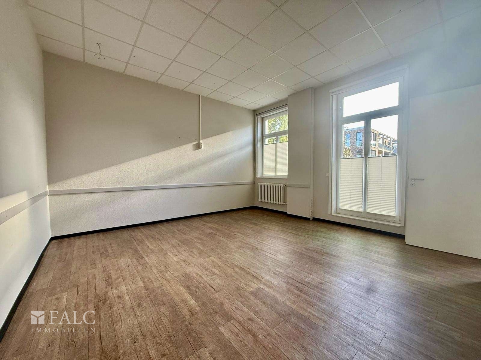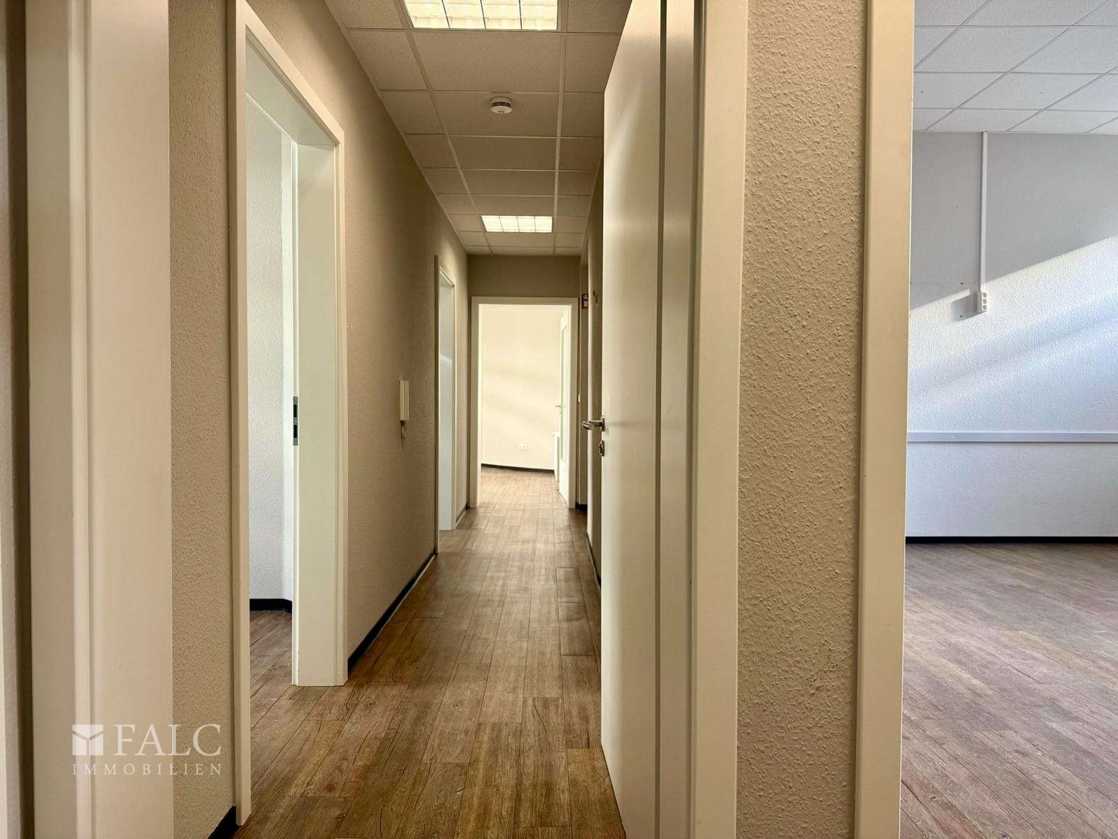 In zentraler Lage stehen barrierefreie Büroflächen im Hochparterre zur Vermietung. Die Einheit umfasst ca. 125 m² und bietet eine klare, funktionale Raumstruktur mit fünf Büroräumen, Küche, WC sowie einem Balkon.