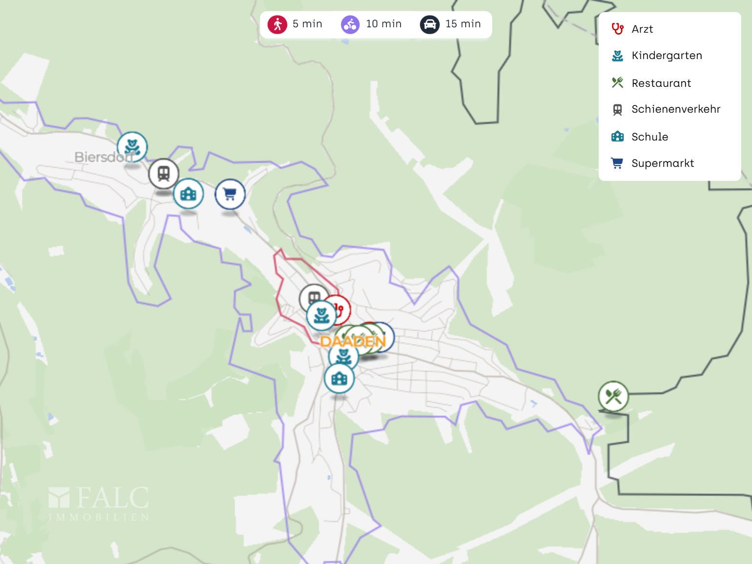 In der Freizeit bietet Daaden eine gute Mischung aus Gastronomie und kleinen Ausflugszielen. Restaurants wie Gasthof Koch oder La Fontana liegen in der Nähe, und das Heimatmuseum Daaden ist ebenfalls gut erreichbar. Insgesamt überzeugt die Lage durch eine solide Infrastruktur, kurze Wege und eine alltagstaugliche Kombination aus Versorgung, Mobilität und Freizeitmöglichkeiten.