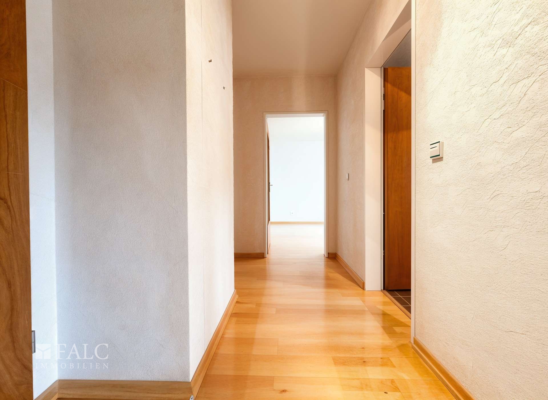 Über das helle und gepflegte Treppenhaus gelangt man bequem zur Wohnung. Beim Eintreten öffnet sich ein einladender Bereich, der sich hervorragend als Essbereich nutzen lässt und den zentralen Knotenpunkt der Wohnung bildet. Von hier aus erreichen Sie direkt die Küche, das großzügige Wohnzimmer, den Balkon sowie einen separaten Flur, der in den privaten Wohnbereich führt.