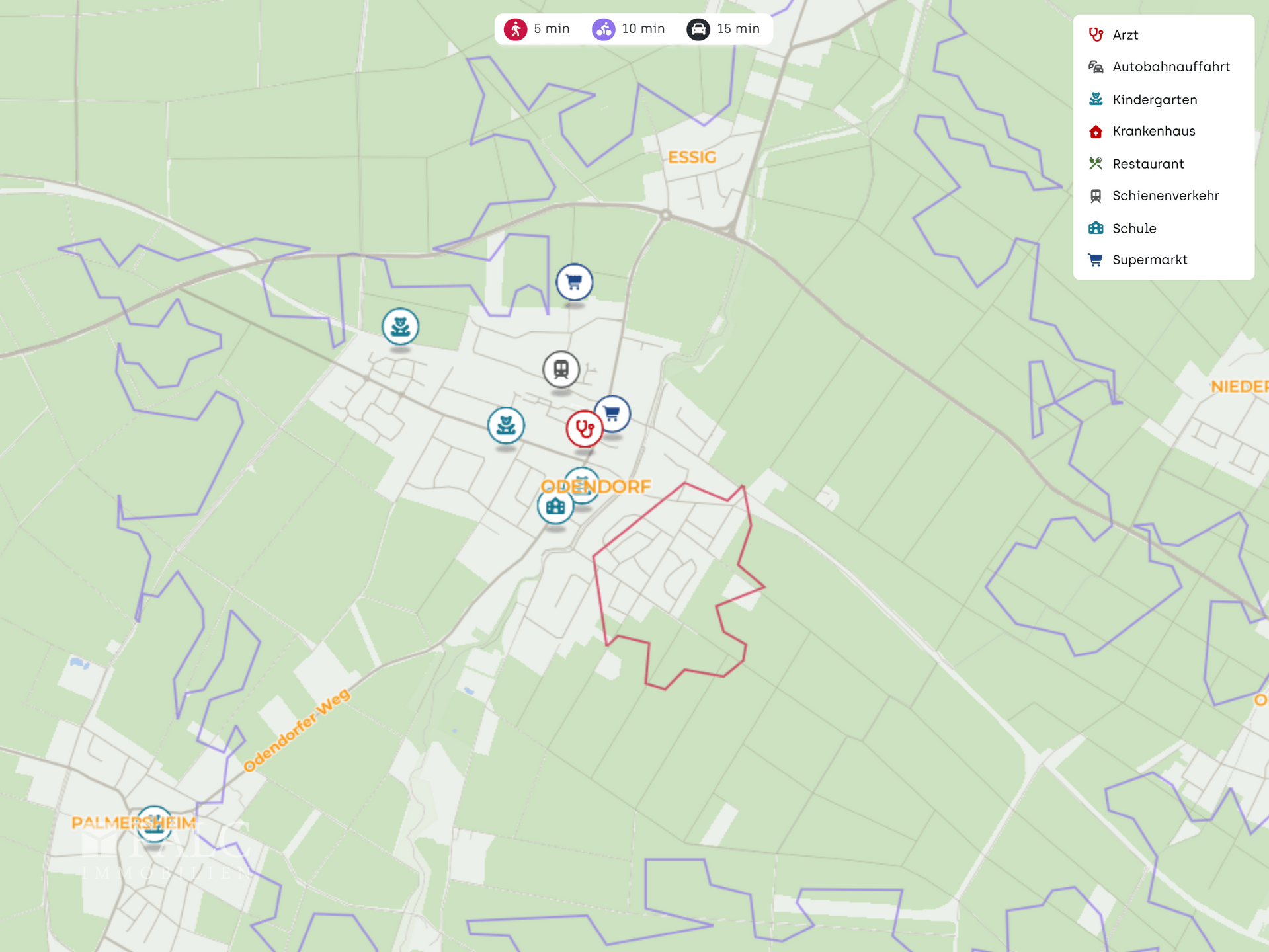 Die naturnahe Umgebung mit weitläufigen Feldern, Wiesen sowie Rad- und Wanderwegen bietet vielfältige Erholungsmöglichkeiten direkt vor der Haustür. Gleichzeitig profitieren Bewohner von einer sehr guten Verkehrsanbindung: Über die nahegelegenen Bundesstraßen und Autobahnen sind die Städte Bonn, Köln und Euskirchen in kurzer Zeit erreichbar. Der Bahnhof Odendorf bietet zudem eine direkte Anbindung an den regionalen Bahnverkehr und ermöglicht eine komfortable Verbindung insbesondere in Richtung Bonn und Euskirchen.