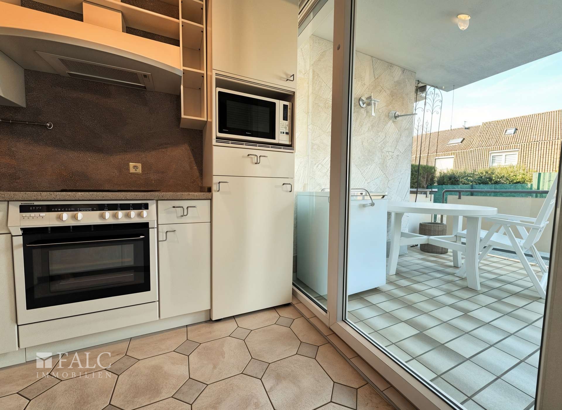 Direkt vom Wohnzimmer aus gelangt man in die separate Küche, die praktisch geschnitten ist und kurze Wege im Alltag ermöglicht. Ein besonderes Highlight der Wohnung ist der Balkon, der sowohl vom Wohnzimmer als auch von der Küche aus zugänglich ist. Dadurch entsteht ein angenehmer Übergang zwischen Innen- und Außenbereich, der zusätzlichen Wohnkomfort bietet und zu entspannten Stunden im Freien einlädt.