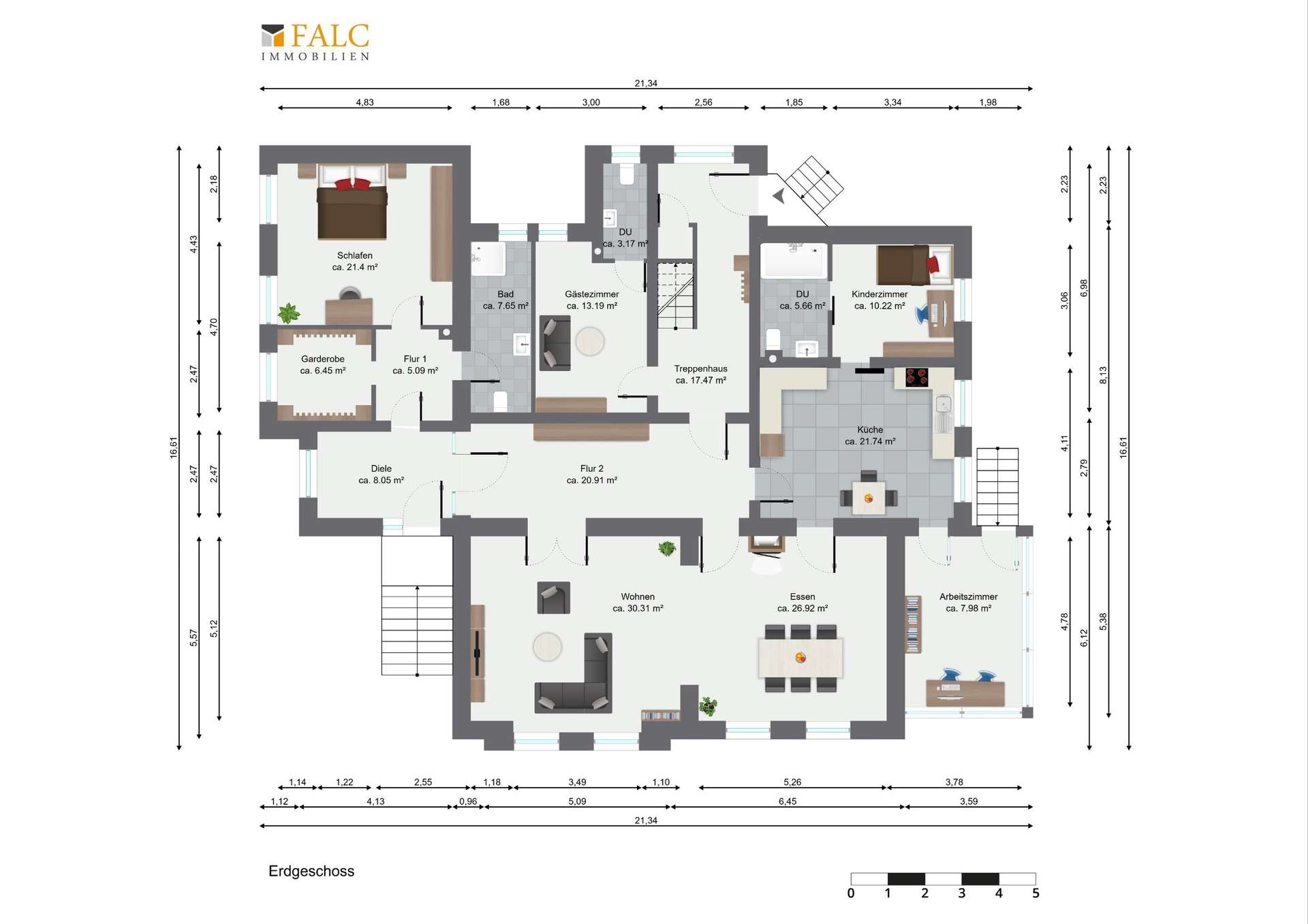 • Erdgeschoss (ca. 176 m²): ab Juli 2025 frei zur Eigennutzung oder Vermietung