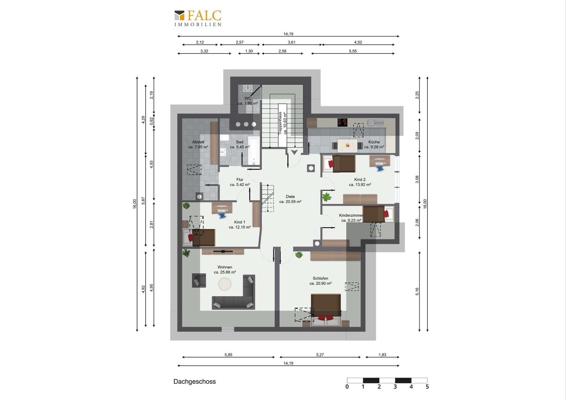 • 1. Obergeschoss (ca. 166 m²): seit 01.03.2025 vermietet