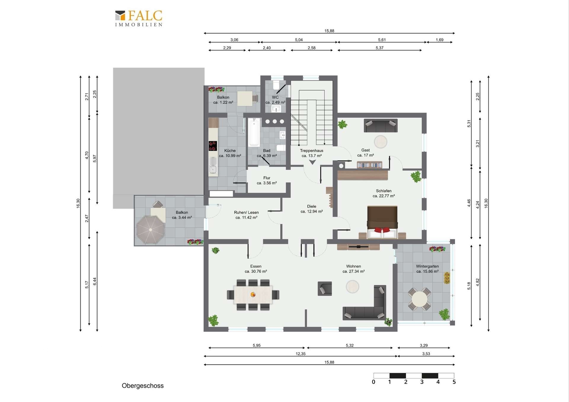 • Nutzungskonzept: Teilweise vermietet, ideal für Mehrgenerationenwohnen, zur teilweisen Eigennutzung oder als exklusiver Familiensitz mit Mieteinnahmen
