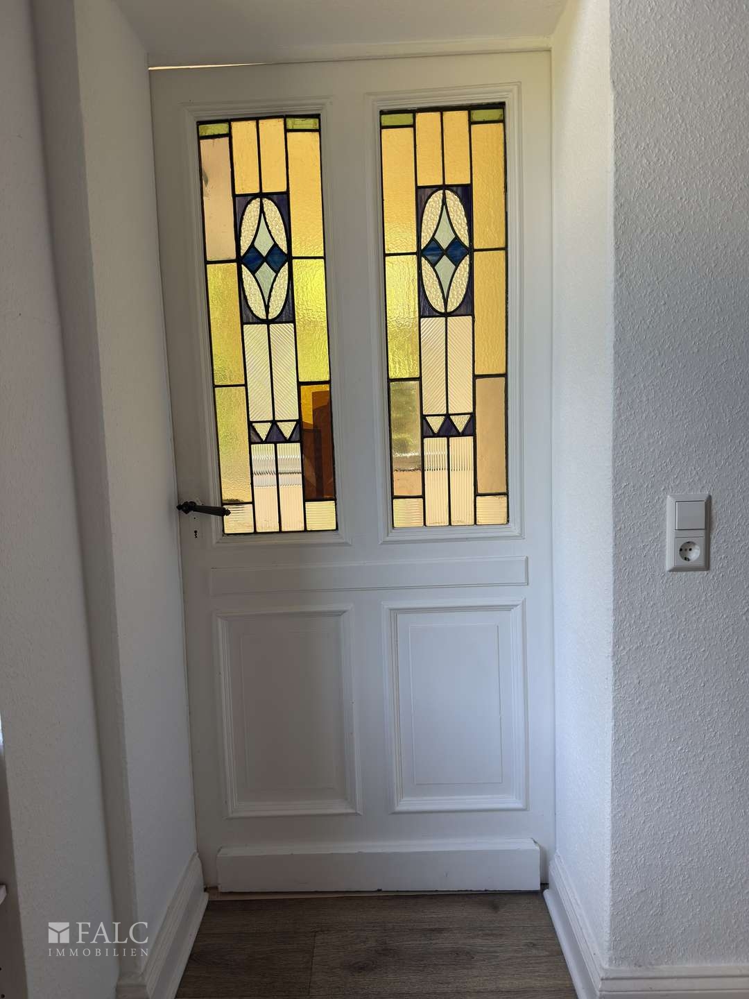 • Fenster: Teilweise Original erhaltene Fenster mit kunstvoller Verglasung und historischer Ornamentik – ein seltenes Schmuckstück