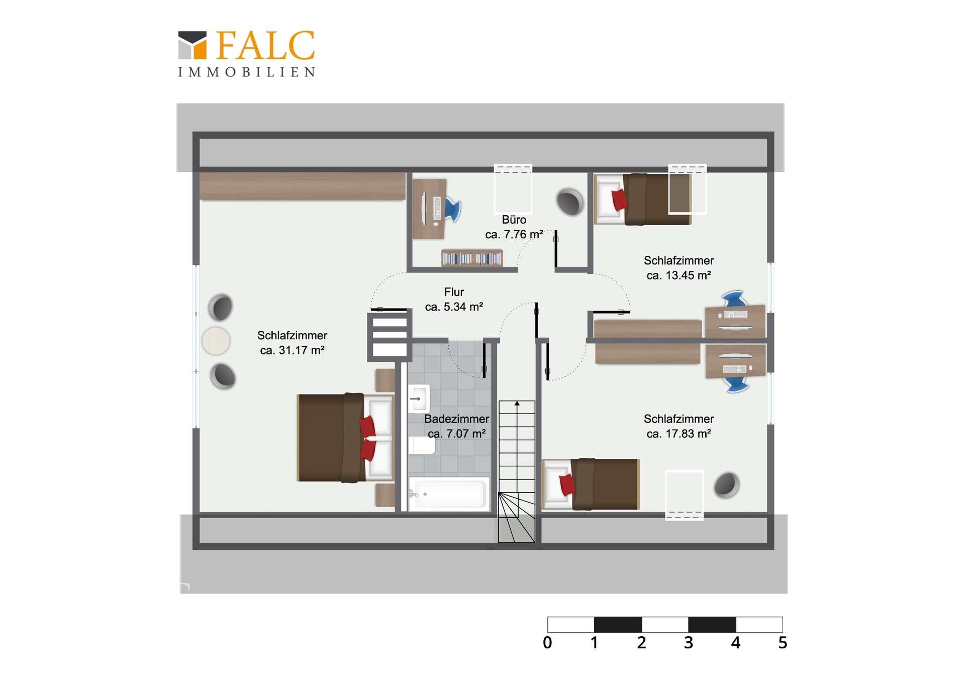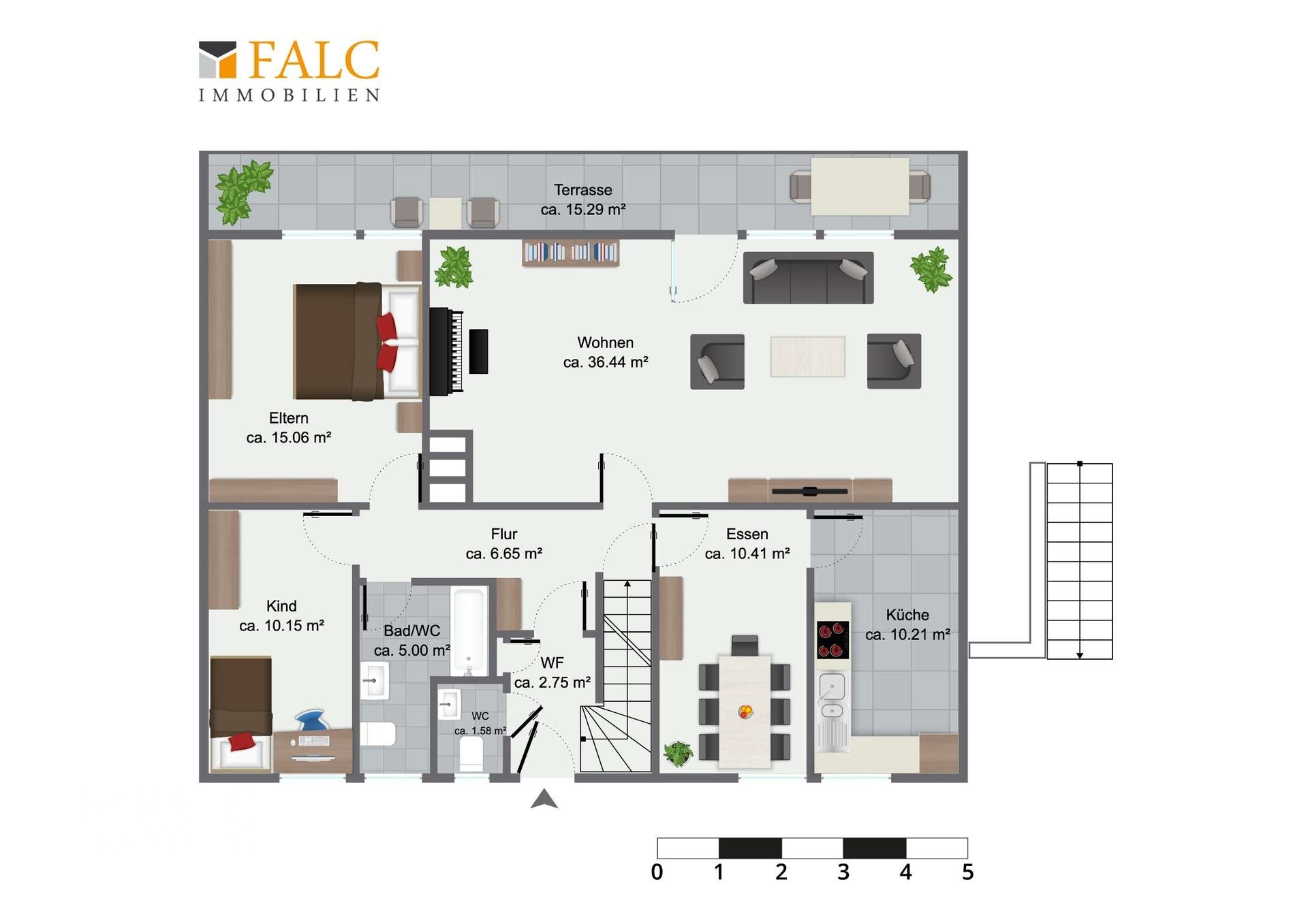 - Hauptwohnung: ca. 187 m² Wfl mit 6 Zimmern auf zwei Ebenen