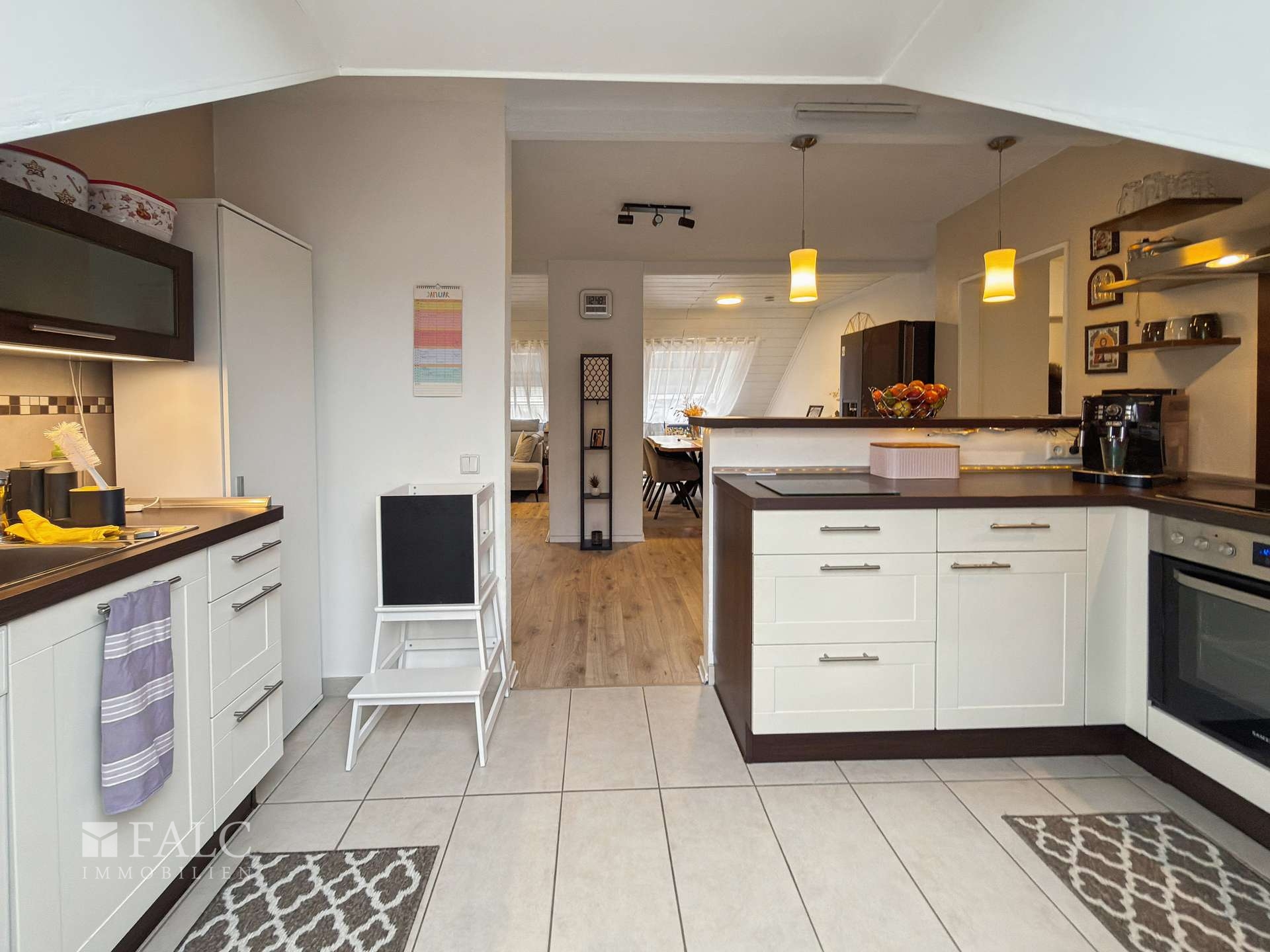 Auf ca. 77 m² Wohnfläche bietet die Wohnung einen offenen und lichtdurchfluteten Wohnbereich mit integrierter Küche. Die offene Küchengestaltung schafft eine kommunikative Wohnatmosphäre und eignet sich ideal für modernes Wohnen und gesellige Abende.