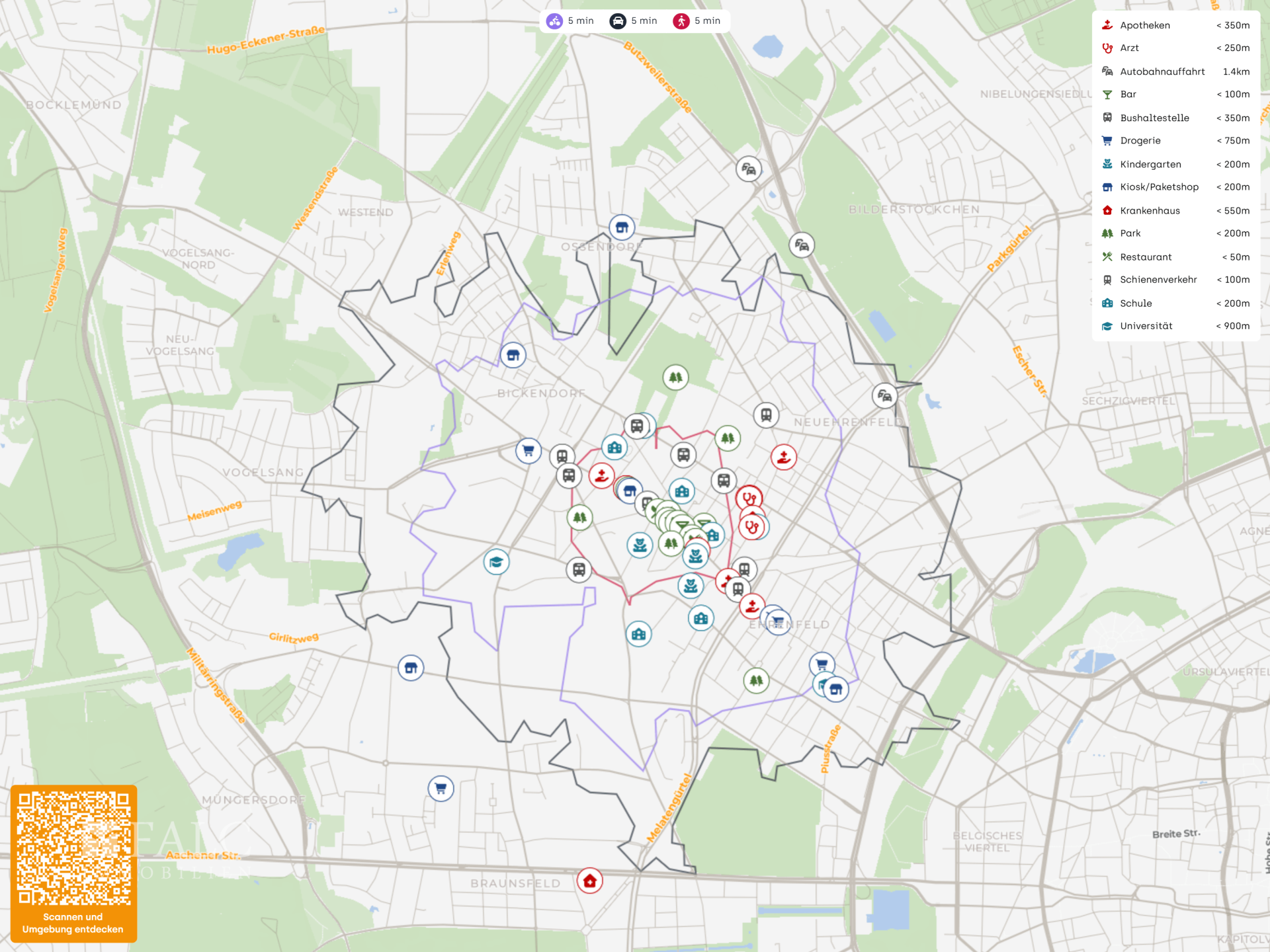 Die Lage vereint urbanes Leben mit hervorragender Infrastruktur und nachhaltigem Entwicklungspotenzial – eine gefragte Adresse für Wohnen, Arbeiten und Investieren im Herzen von Köln-Ehrenfeld.