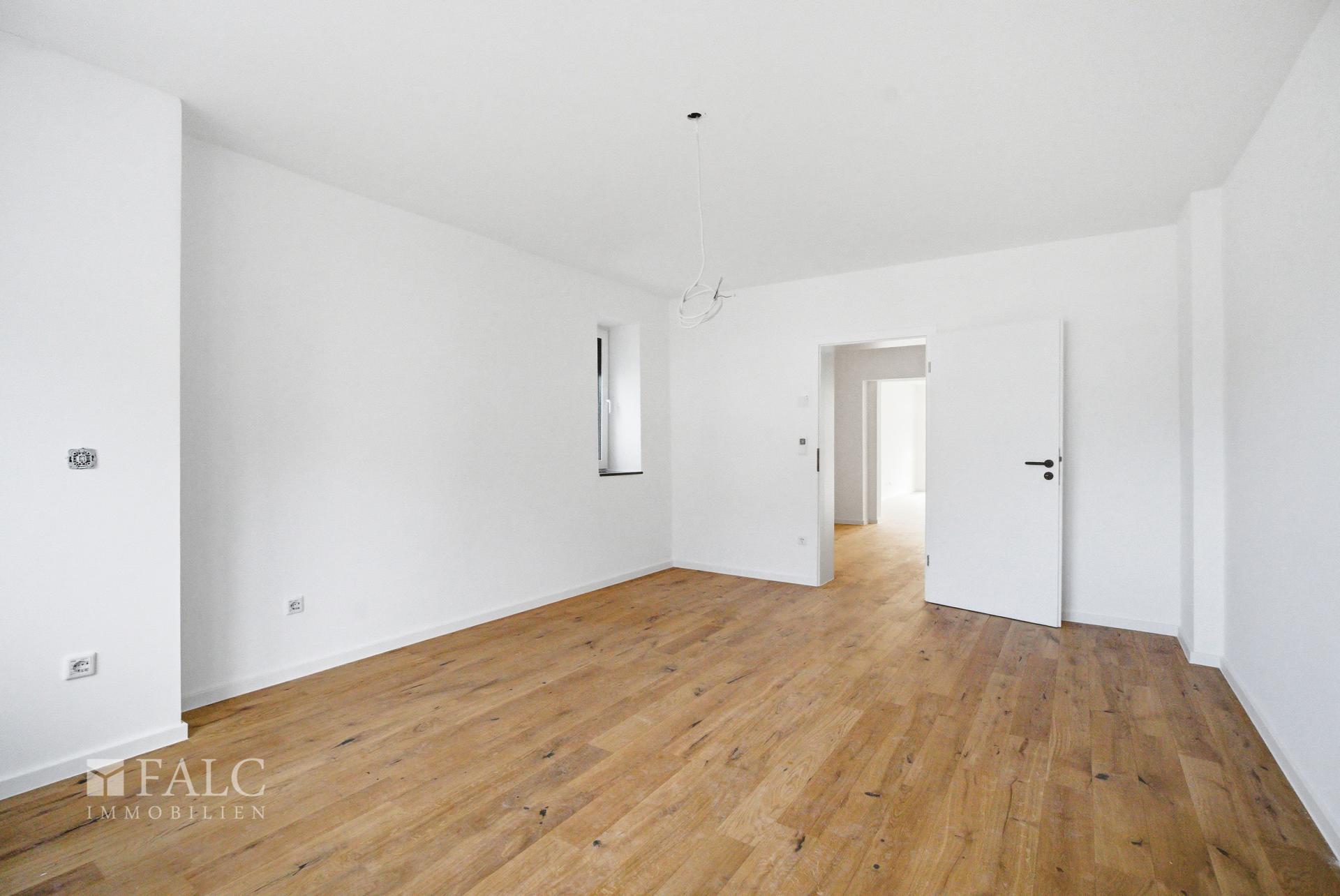Die Wohnung verfügt über 4 Zimmer, darunter einen großzügigen offenen Wohn- und Essbereich, der ein luftiges, modernes Wohngefühl vermittelt und vielfältige Einrichtungsmöglichkeiten bietet. Durch die großen Fensterfronten entsteht eine natürliche Helligkeit, die den Wohnbereich optimal inszeniert.