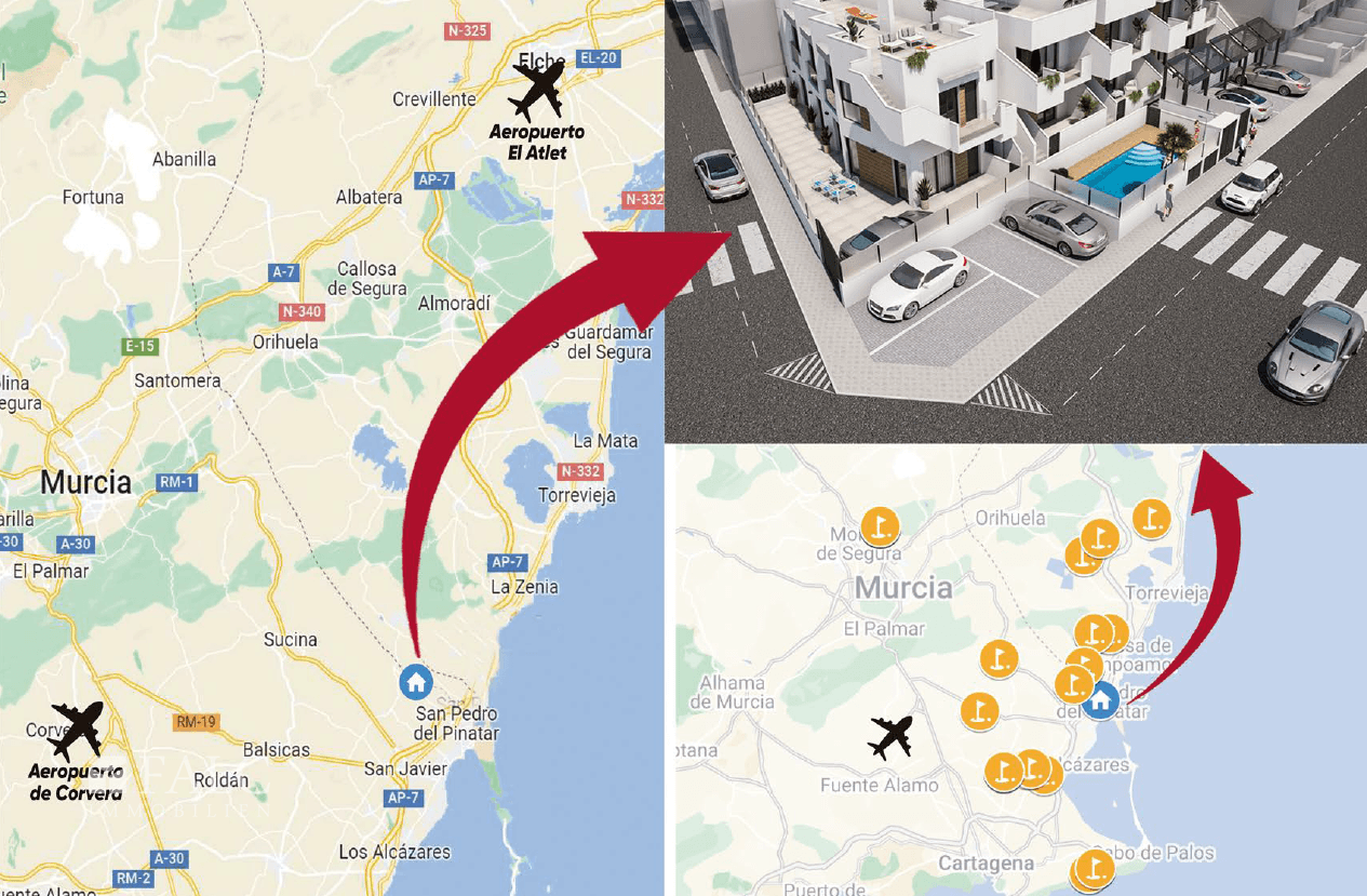 Dank der guten Anbindung an die Flughäfen Murcia (ca. 30 Min.) und Alicante (ca. 50 Min.) ist die Wohnanlage auch für internationale Käufer attraktiv.