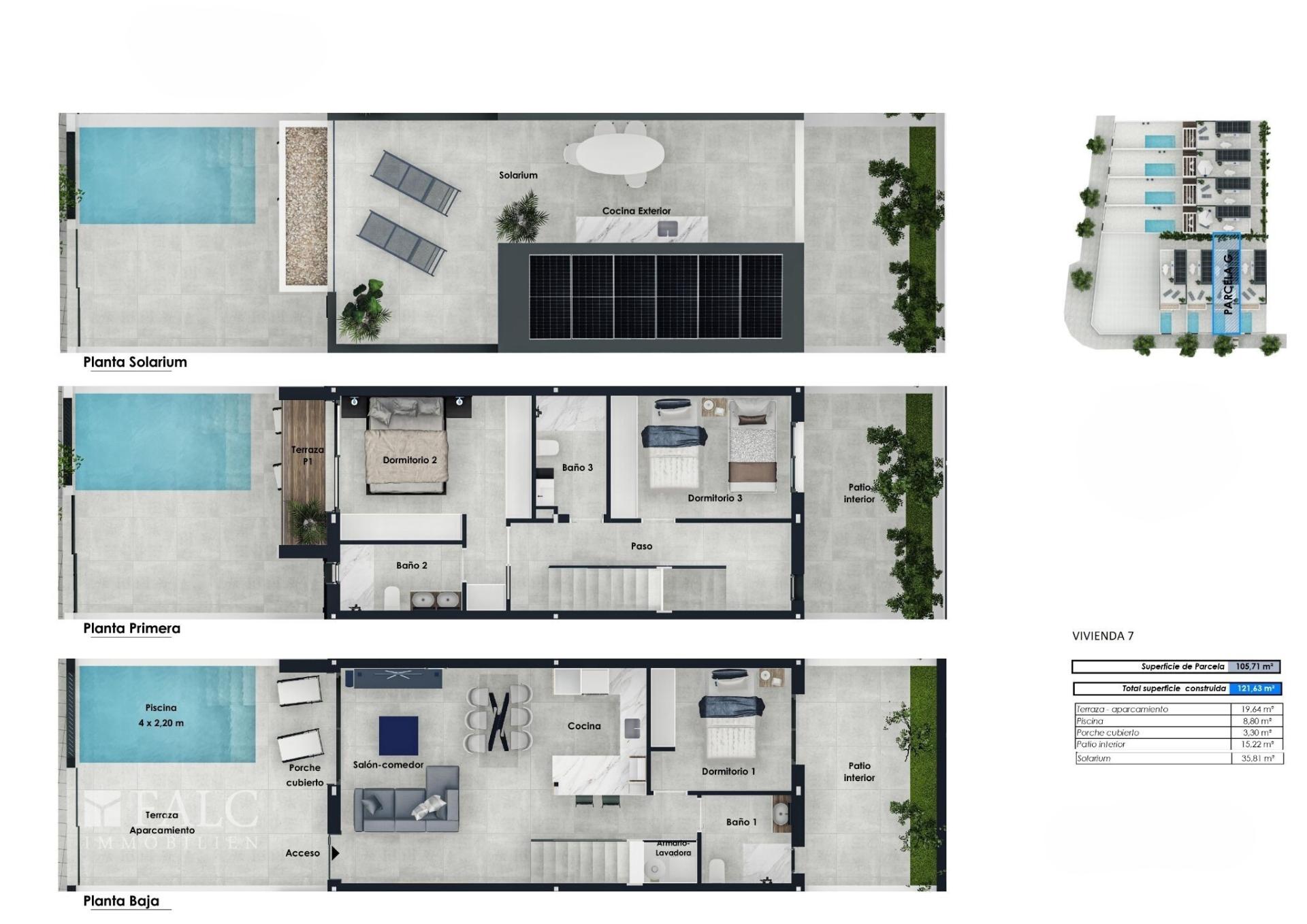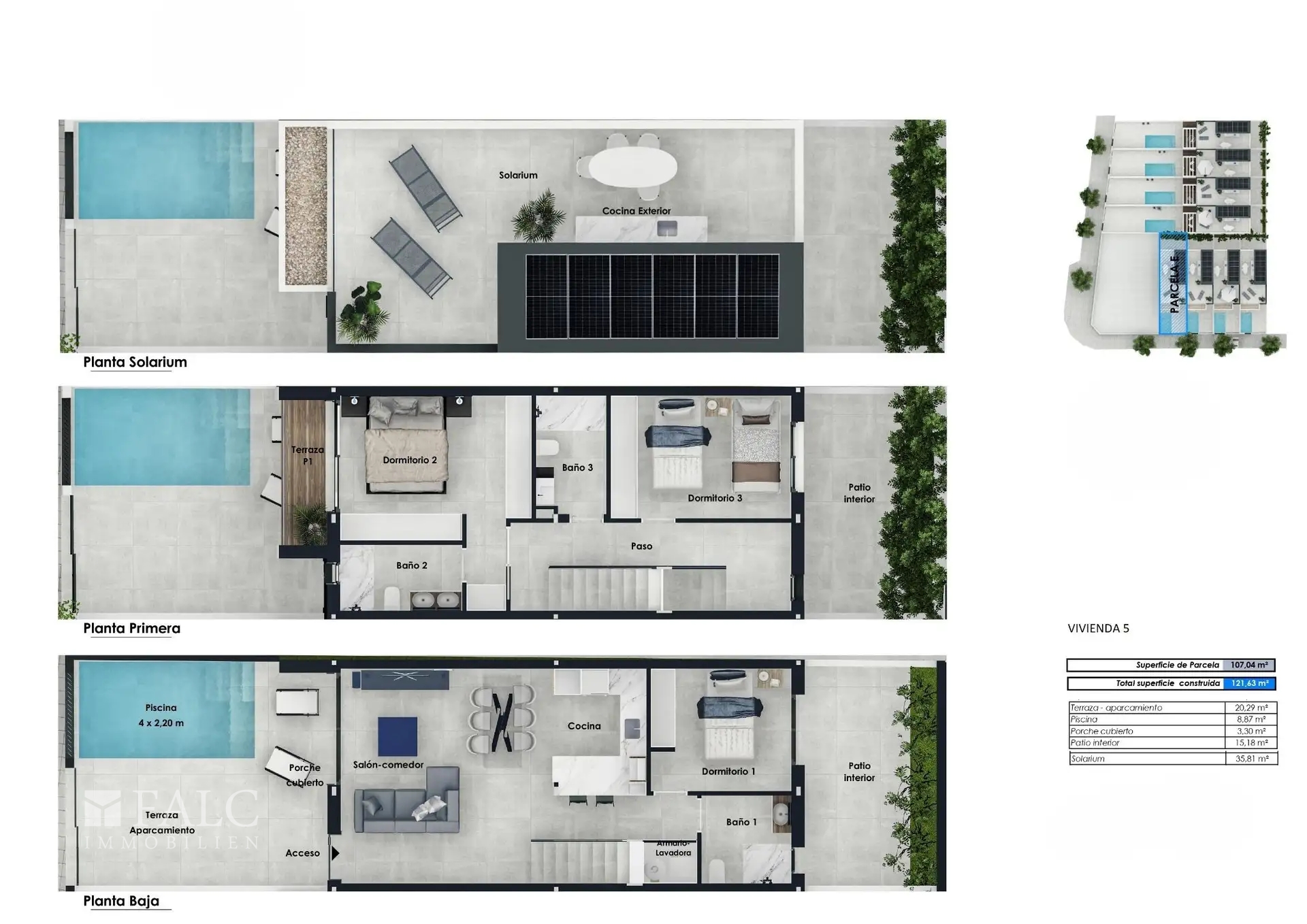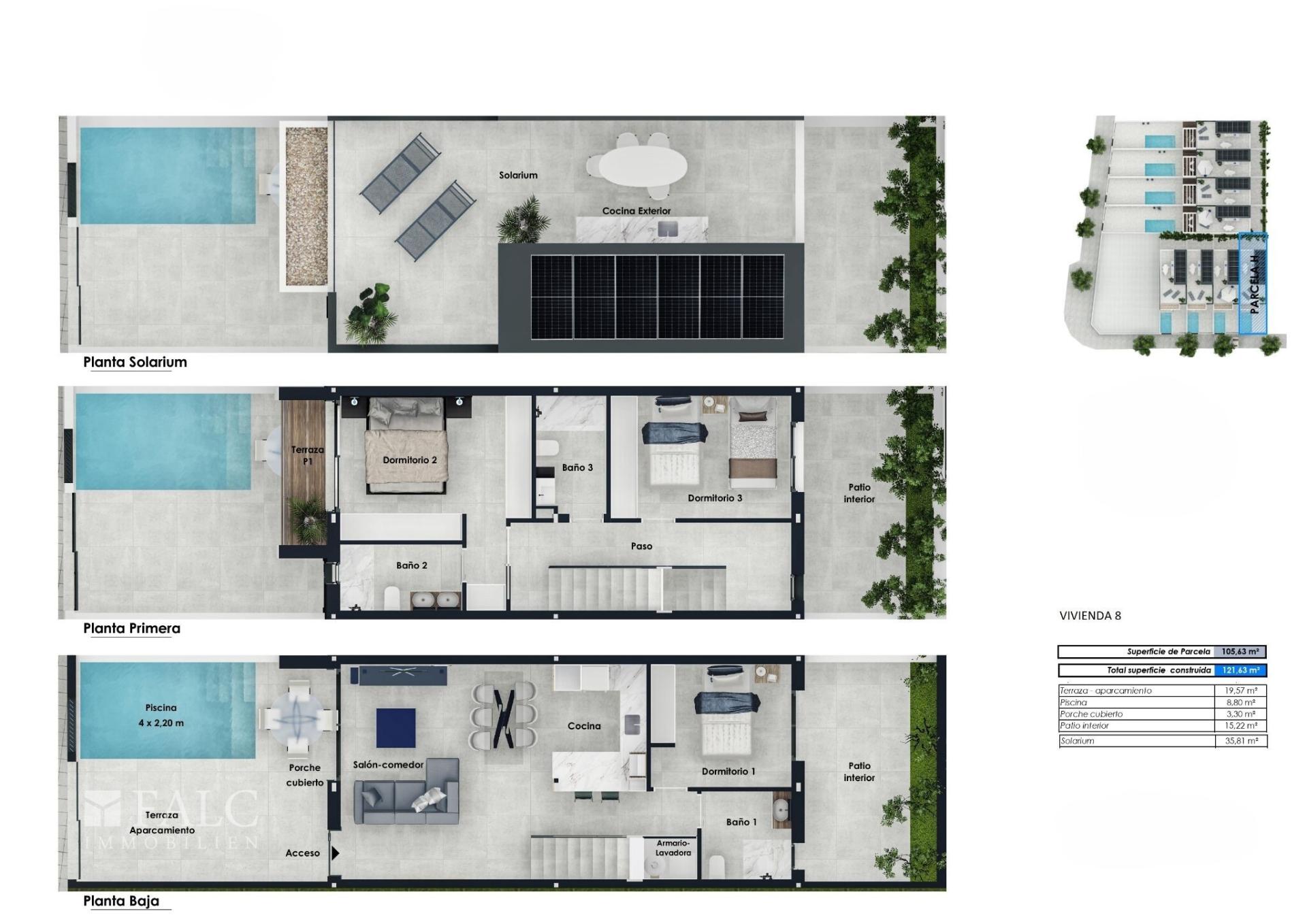 Das ist ein luxuriöser Neubaukomplex bestehend aus 8 modernen Reihenhäusern/Villen mit privatem Pool und großzügigem Solarium.