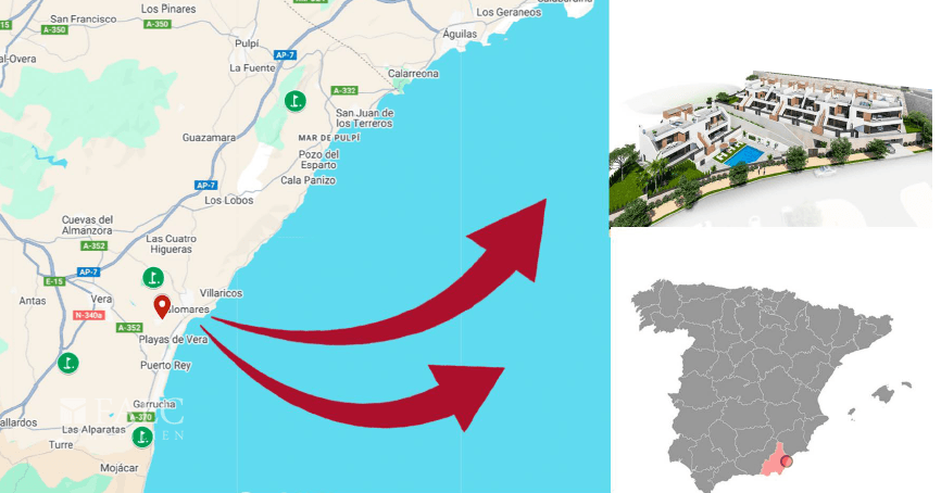 Die Wohnanlage befindet sich in Vera Playa, einer der beliebtesten Küstenregionen Andalusiens, in der Provinz Almería. Die Lage ist unschlagbar: nur wenige Minuten vom weitläufigen Sandstrand entfernt, umgeben von gepflegten Grünflächen, Parks und Sportanlagen.