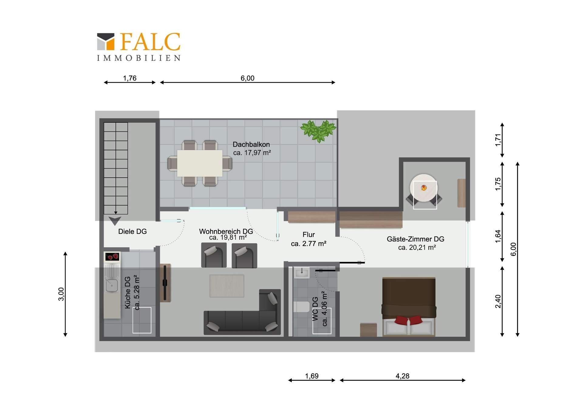 - Das Dachgeschoss verfügt über einen zusätzlichen, ca. 20 m² großen Raum, der nicht in der Wohnfläche berücksichtigt ist und verschafft dem Haus somit noch zusätzlichen Platz und Flexibilität.