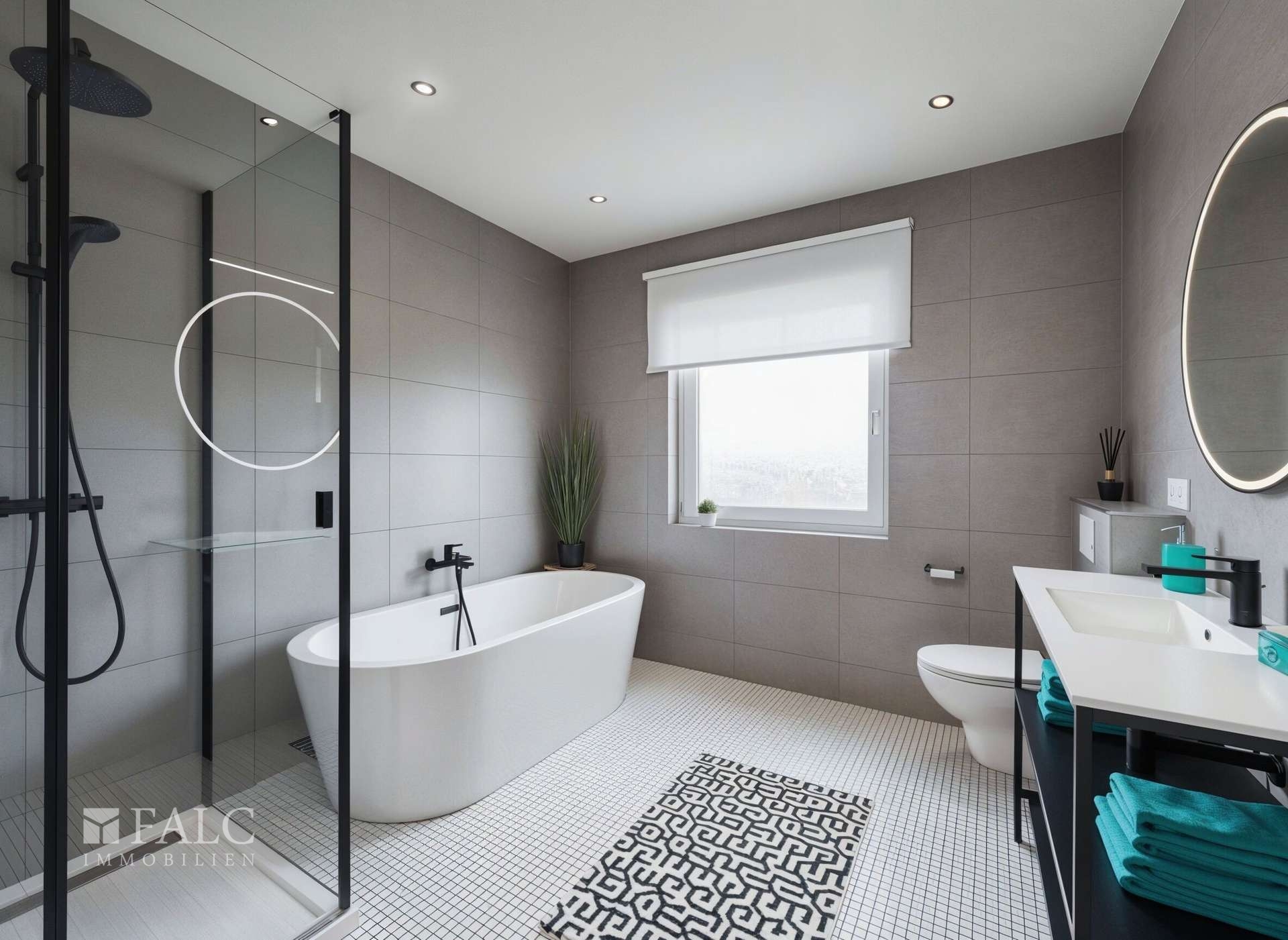 - Tageslichtbad: Badezimmer mit Badewanne und Dusche